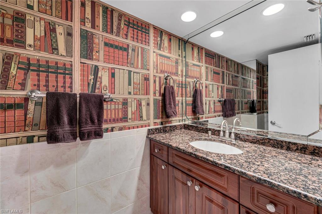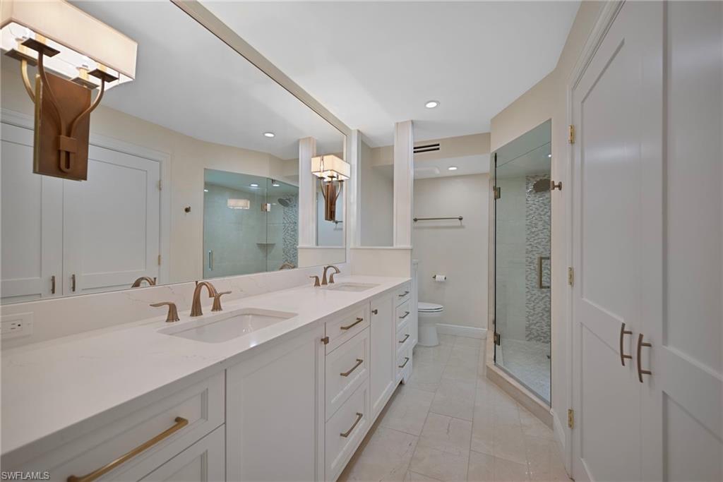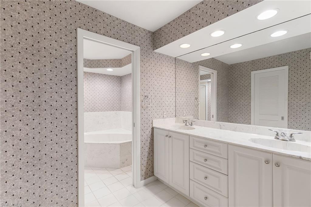 Absolutely Stunning! This top-floor, furnished three-bedroom residence with a wide balcony in an elevator building has been completely reimagined with a tailored renovation that elevates every detail. Wide-plank French oak flooring sets the stage for a bright, modern interior. The chef’s kitchen boasts quartz countertops with a dramatic waterfall edge, a butler’s pantry with double ovens and a warming tray, and exquisite tile inlays. Multiple built-in wine coolers, climate-controlled wine storage, and beverage fridges make entertaining effortless. The open living area showcases an elegant marble entertainment wall with an electric fireplace, custom shiplap accents, and floor-to-ceiling impact-rated sliders framing sweeping views. A cozy breakfast cove with leather seating and power shades offers the perfect place to relax. Every detail has been thoughtfully designed, from custom closets and a built-in desk to designer light fixtures and intricate tilework throughout. Spa-like bathrooms feature seamless glass shower doors, herringbone tile, and luxurious finishes, while the primary suite includes both a soaking tub and a walk-in shower. Refined finishes in every room create a true private oasis that embodies modern elegance. Additional highlights include a fantastic golf cart with a lithium-ion battery and a dedicated golf cart storage area with custom cabinetry. Residents have exclusive access to the newly constructed state-of-the-art 5-star Clubhouse and practice facility, making this property a golfer's paradise. A golf cart and dedicated cart garage are included, conveniently located next to your assigned covered parking. Set within a stunning 200-acre gated community, you'll enjoy beautifully landscaped grounds and mature trees lining the roads. This community offers unlimited golf on an 18-hole Arthur Hills course, as well as five inviting pools, four tennis courts, bocce, croquet, and a dog park. This condo is a true gem, just minutes from the vibrant shopping and dining of 5th Avenue and Old Naples. Purchase of a Wilderness Country Club membership is required and immediately available, offering you an effortless transition into this luxurious lifestyle.