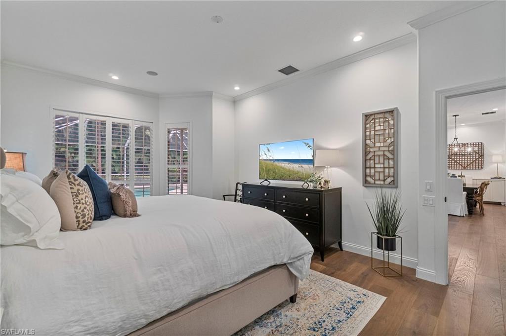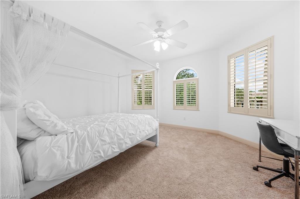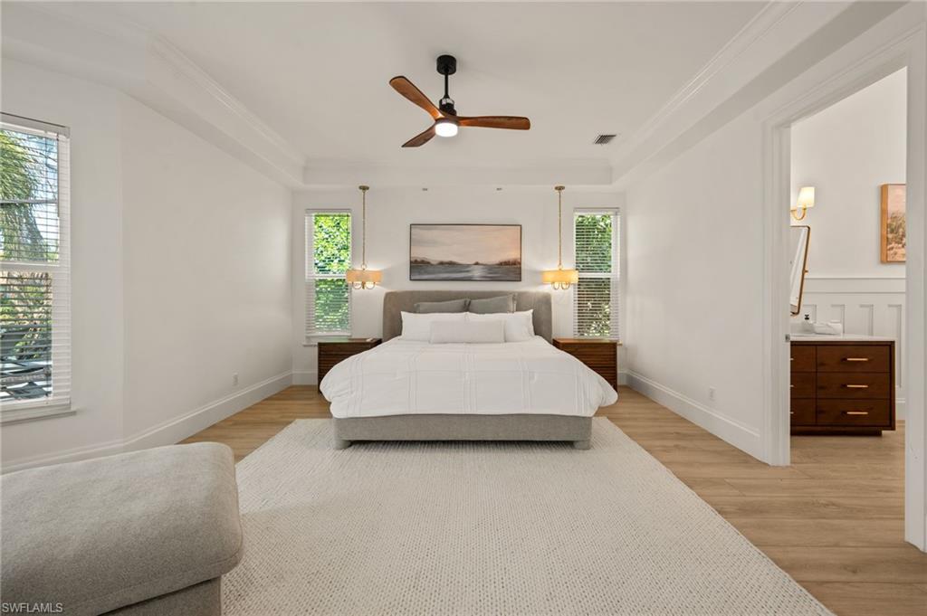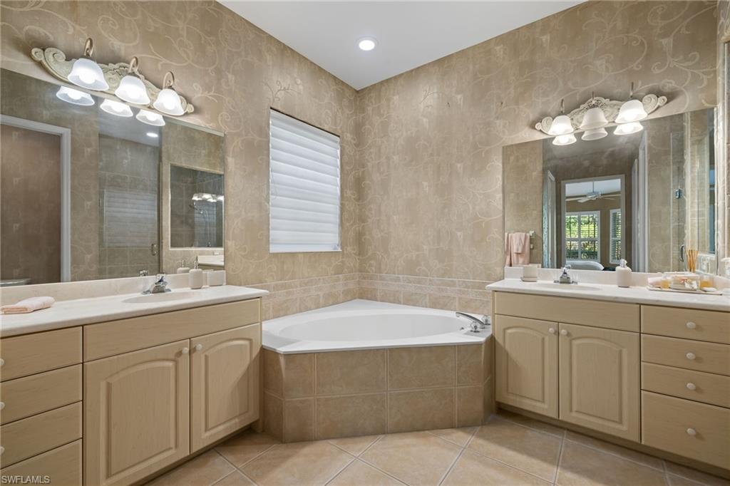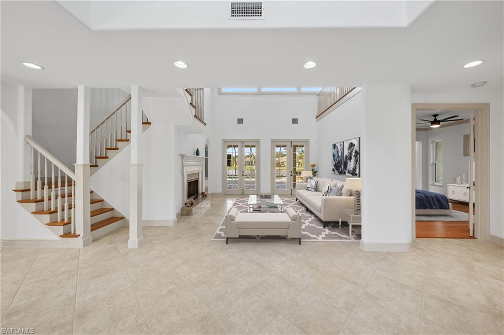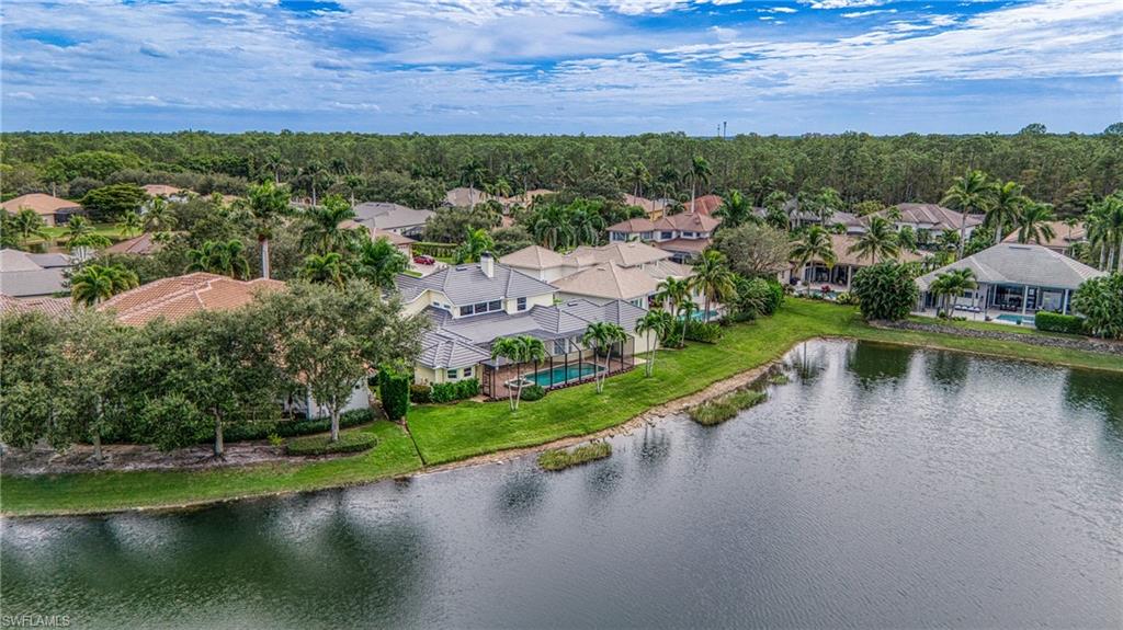 The ultimate in Naples and Florida living is ready for you. Boasting nearly 3,600 sq. ft. of living space and 4,744 total construction including the 3 car garage, this rarely available 2-story concrete block residence with plenty of natural light, offers 4 bedrooms + den/ 5th bedroom connected to full bath and all main floor counters and faucets have been updated in the past 30 days. There are 4.5 baths in total, including pool bath. This home represents an exceptional market value, priced below recent appraisals and comparable sales, offering buyers a rare opportunity to own a property enhanced by hundreds of thousands of dollars in thoughtful upgrades. The heated saltwater system pool, jacuzzi, 3-car garage, and cul-de-sac location provide both luxury and privacy, while direct access to North Collier Park and top-rated schools make this ideal for families. No detail was overlooked: new light fixtures, fresh paint, and modern upgrades enhance every corner of this stunning property from top to bottom. The grand foyer with soaring ceilings leads to the formal living area, while all new impact-resistant doors and windows ensure peace of mind. A newer 24kW Generac whole-house generator with a 500-gallon underground LP tank offers up to 5 days of backup power. The chef’s kitchen features newer LG stainless steel appliances (under extended warranty), gorgeous and brand new quartz counters, a large walk-in pantry, and chic functional style. In the North wing, the first-floor primary suite is a true retreat, with a double vanity, double walk-in closets, separate tub and walk-in shower with double shower heads, and private access to the enclosed lanai, also, the den/office, large formal dining room, formal living room and a family room. Upstairs, two guest bedrooms share a Jack-and-Jill bath, and an ensuite offers abundant natural light and privacy, along with a custom built-in bookshelf for the avid reader. Resort-style living continues outdoors with 145 feet of west-facing water views, a saltwater pool and spa, built-in outdoor kitchen with 8-burner gas/charcoal grill and refrigerator, powder room, and covered lanai perfect for entertaining. The 3-car garage includes epoxy flooring, AC, and extra storage. Additional upgrades include brand new LG washer/dryer, whole-house spring water reverse osmosis filtration and UV system, 2023 HVAC system, and a 2019 Tile Roof, fountain, paved circular driveway, automatic irrigation system, automatic front door, and lanai patio hurricane roll down shutters. Wilshire Lakes offers the ultimate in luxury, man-guarded 24 hours security gate, located less than 6 miles from the pristine white-sand Naples beaches, nearby shopping, fine dining, entertainment, west of I-75, rate A school zone and much more... —this home is truly a gem!