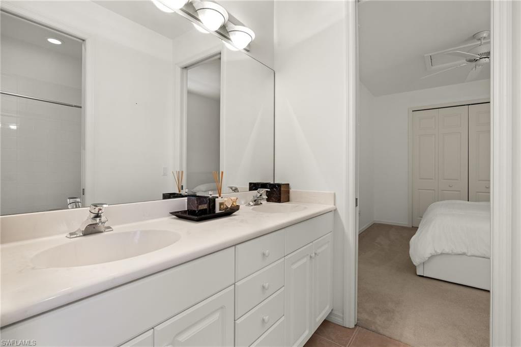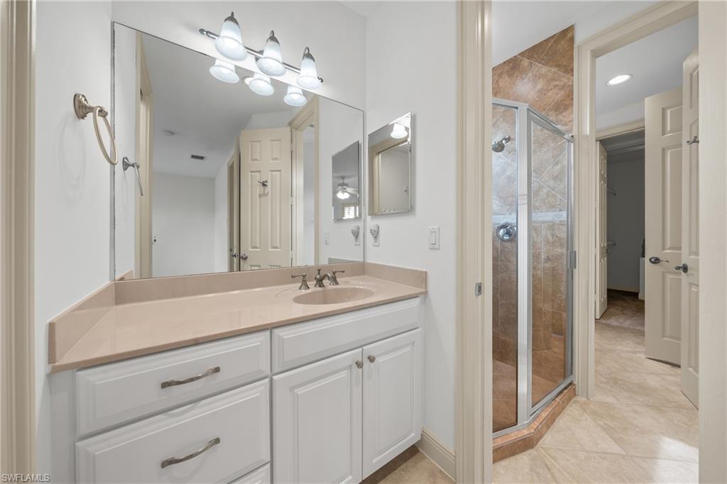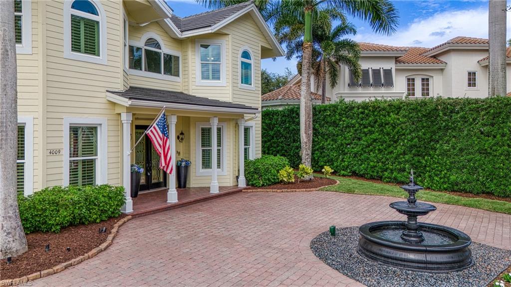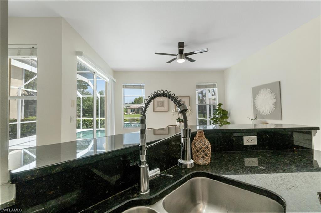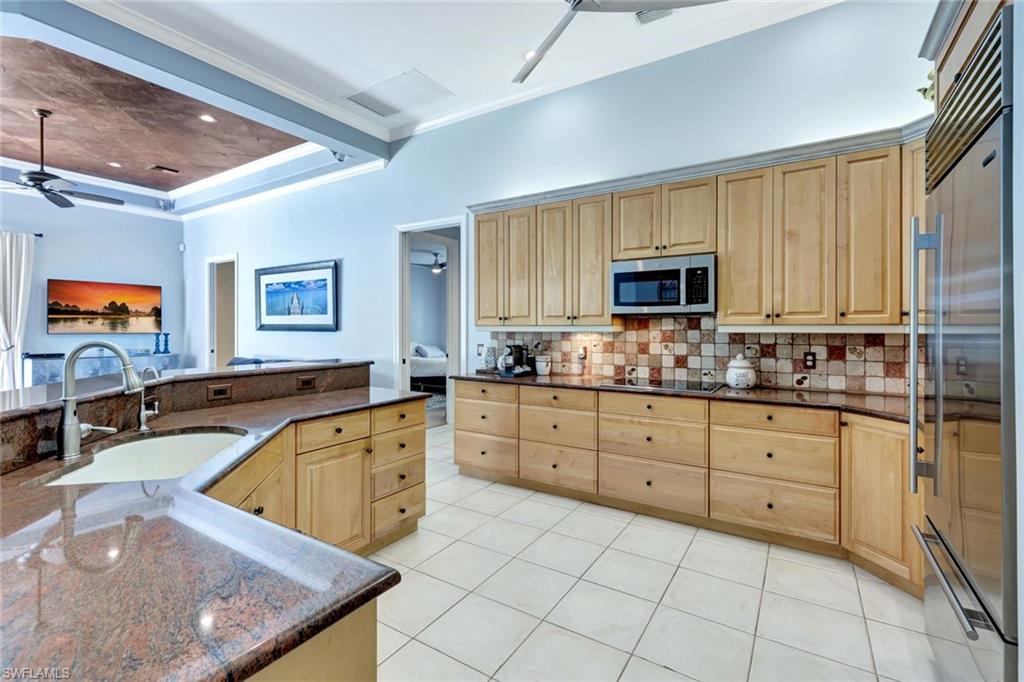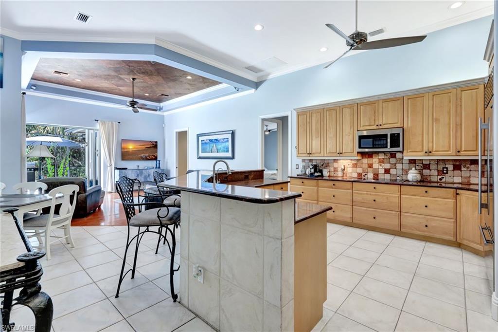 Luxurious Home in the Prestigious Wilshire Lakes Gated Community Welcome to your dream home in the highly desirable Wilshire Lakes community. This exquisite residence welcomes you with a stunning courtyard design, accessible from multiple rooms throughout the home. At its heart lies a serene, lighted, and heated pool and spa with a cascading waterfall—perfect for relaxation or entertaining. The screened courtyard offers both sun and shade, complemented by new pool heating, filtration, lighting, and ceiling fans to create the ultimate year-round oasis. Step inside to discover a beautifully maintained contemporary layout featuring 4 spacious bedrooms and 3.5 baths. The expansive open kitchen impresses with high vaulted ceilings, new cabinetry showcasing rare Brazilian granite countertops with beveled edges, striking hardware and lighting, and a wet bar ideally positioned for conversation. Appliances include a pot-filling tap over the stove, microwave, refrigerator, and new dishwasher, along with a built-in desk area and walk-in pantry for ample storage. Built in 2005, this home boasts abundant natural light through extra windows that frame peaceful views. French doors open from the lanai to a poolside lavatory with artistic tile accents and a pedestal sink. Passing through grand pillars and vaulted ceilings, the living room offers a tranquil retreat with lush privacy landscaping and a lake view backdrop. The primary suite serves as a true sanctuary, featuring an ensuite bath with a tile shower, spa tub, dual sinks, a vanity, a large walk-in closet, a linen closet, and a private water closet. Sliding doors lead directly to the courtyard and a private side porch or dog run. A spacious laundry room with granite countertops, generous cabinetry, washer/dryer, and utility sink connects to the two-car garage, which includes hurricane shutters and attic access. The courtyard also features a private guest cabana or in-law suite with a separate entrance, full kitchenette (stove, refrigerator, sink, and cabinetry), full bath, closet, and its own AC unit—perfect for guests or extended family. The exterior has been freshly painted and professionally landscaped, complete with lighting, new sod in the front and side yards, and a new roof (2019). Located on a private corner lot, this home enjoys low HOA fees, access to “A”-rated schools, and convenient proximity to North Naples shopping, dining, parks, and the beautiful Gulf beaches. Don’t miss the opportunity to experience luxury living at its finest—schedule your private tour of this exceptional Wilshire Lakes home today!