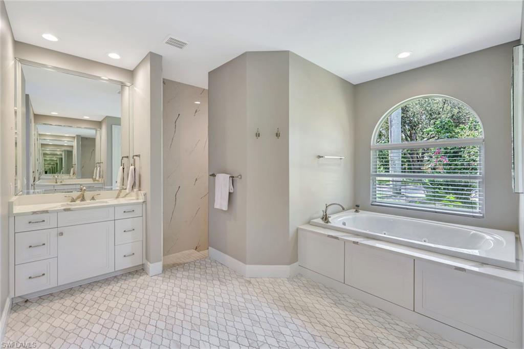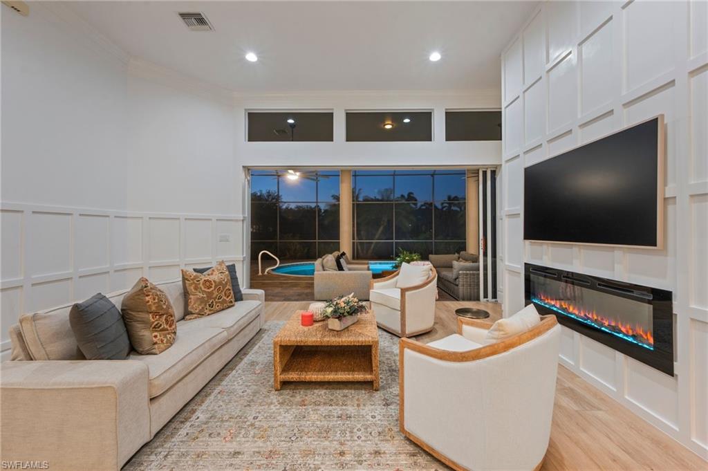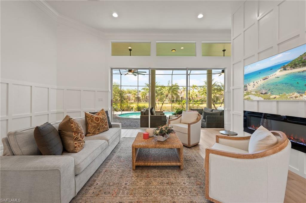 Tucked away at the end of a peaceful cul-de-sac in the highly sought-after Wilshire Lakes subdivision, this fully renovated home offers an exceptional living experience. Set on an oversized lot, the property features an impressive 80-foot fully enclosed view of a tranquil lake, just 5 miles from the pristine sugar sand beaches of Naples. Boasting 4 bedrooms, a spacious den, and 3.5 bathrooms, this home presents a bright, open floor plan with soaring ceilings and an abundance of natural light. The gourmet kitchen, equipped with GE Cafe appliances and ample cabinetry, is ideal for both everyday living and entertaining. The luxurious primary suite includes dual sinks, a soaking tub, and a walk-in shower. Outside, enjoy the ultimate in relaxation with a private pool and spa within a screened-in lanai, perfect for entertaining or unwinding. The property also offers a three-car garage and is fully turnkey, allowing you to move in with ease. This home provides peace of mind with full hurricane protection, surge protection, and being plumbed for a generator. With access to top-rated schools, community amenities such as tennis courts and a fitness center, and proximity to shopping and dining, this property offers the perfect combination of comfort, security, and convenience. Don’t miss the chance to make this exceptional home yours!