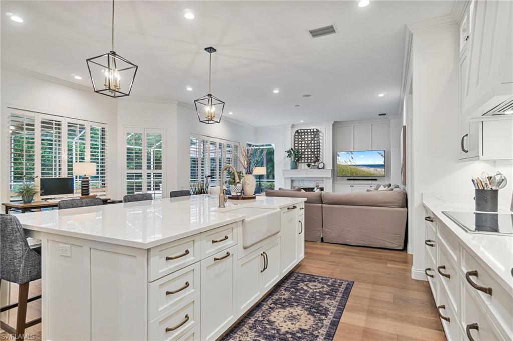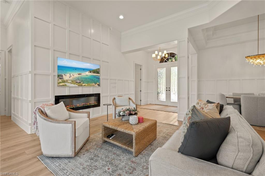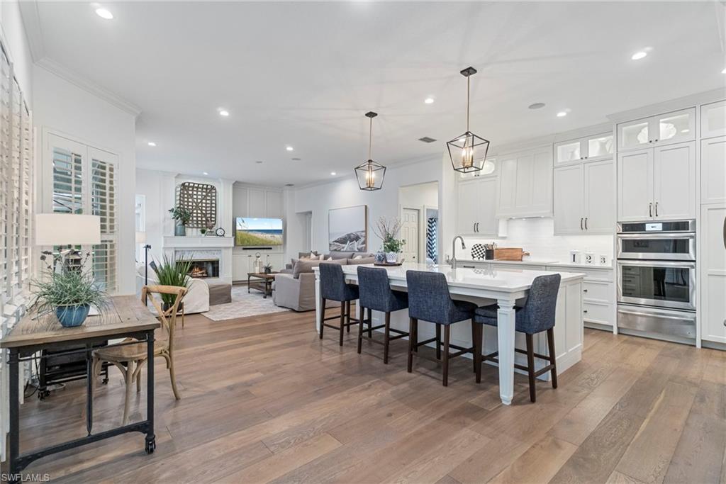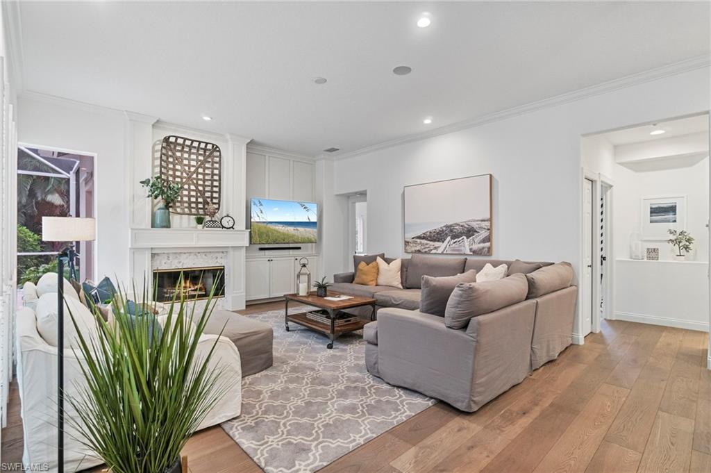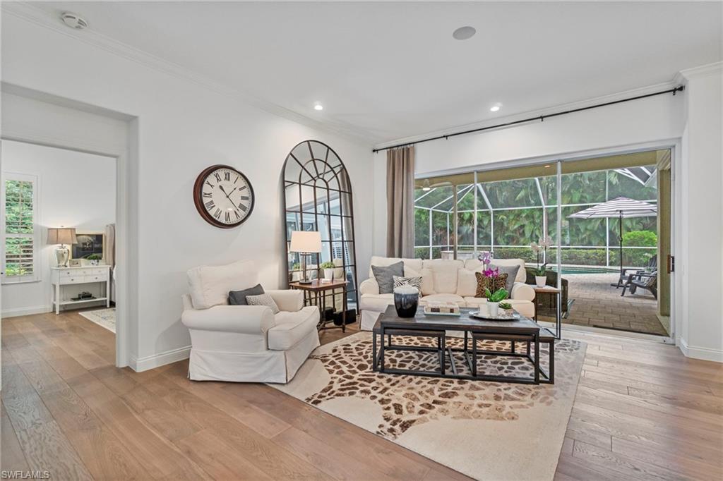 Welcome to Wilshire Lakes where you’ll find this beautifully remodeled Southern-exposure residence, perfectly located on a large wooded lot, offering ultimate privacy with lush preserve views all around. The shaded front yard with majestic oak trees welcomes you into a home filled with charm and modern upgrades. The heart of this open concept home is the gourmet kitchen with large center island, custom cabinetry, quartz countertops, and top-of-the-line appliances including built-in Jennaire refrigerator, Wolfe induction cooktop, Jennair wall ovens with warming drawer, tiled backsplash and farmhouse sink. The expansive split floor plan features wide-plank white oak hardwood flooring, four bedrooms, office or fifth bedroom and three fully remodeled bathrooms (including a convenient pool bath). Charming details throughout include crown molding, custom built-ins, a wood-burning fireplace with charming mantle, walls of sliders for all day sunshine and plantation shutters in all main living areas and owner’s suite. A three-car garage and large closets provide abundant storage. Designed for effortless indoor-outdoor living, the home’s backyard invites you to unwind in total privacy. Offering preferred southern exposure, the paver deck, covered lanai, and sparkling heated saltwater pool and spillover spa offer privacy with lush preserve views. Wilshire Lakes is nestled within a private preserve of 254 acres of scenic lakes and woodlands. Just minutes away, you’ll find some of Southwest Florida's finest beaches, as well as the upscale Mercato shopping and dining district. The community of Wilshire Lakes also features a clubhouse with fitness center, a community pool and tennis courts, as well as 24-hour guard gated security. Don’t miss the opportunity to make this special home yours!