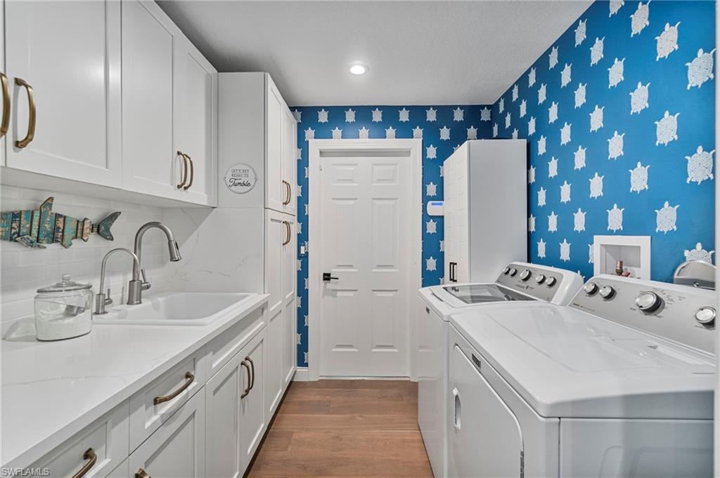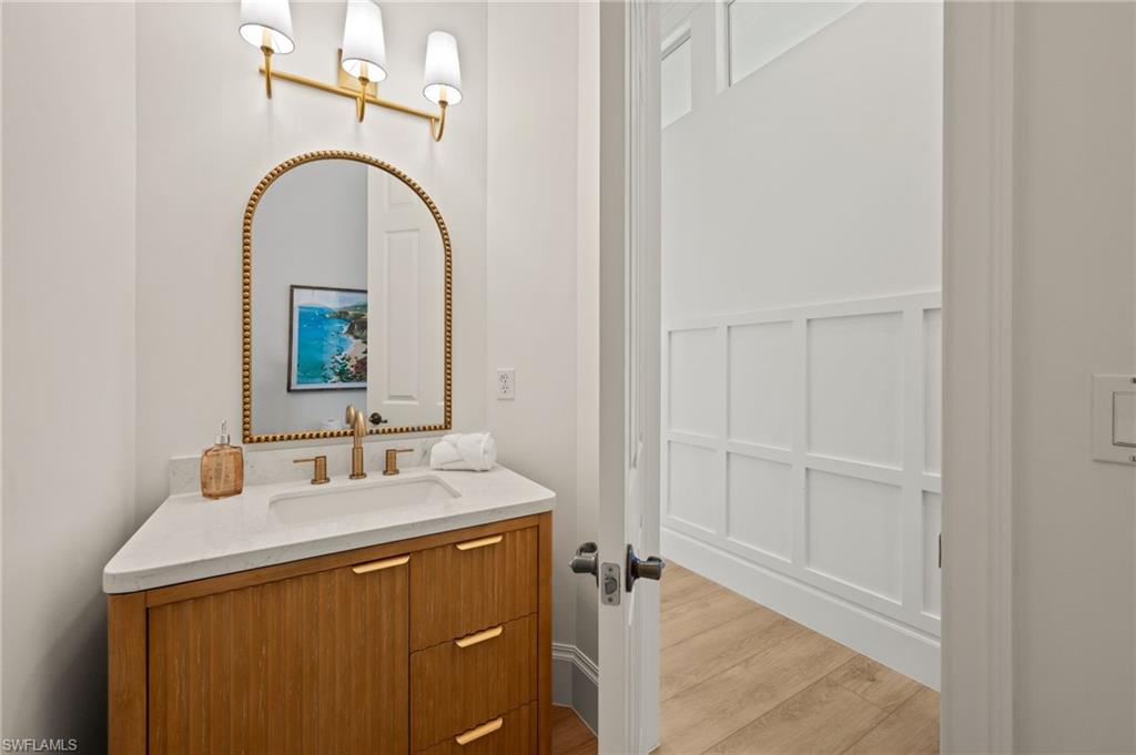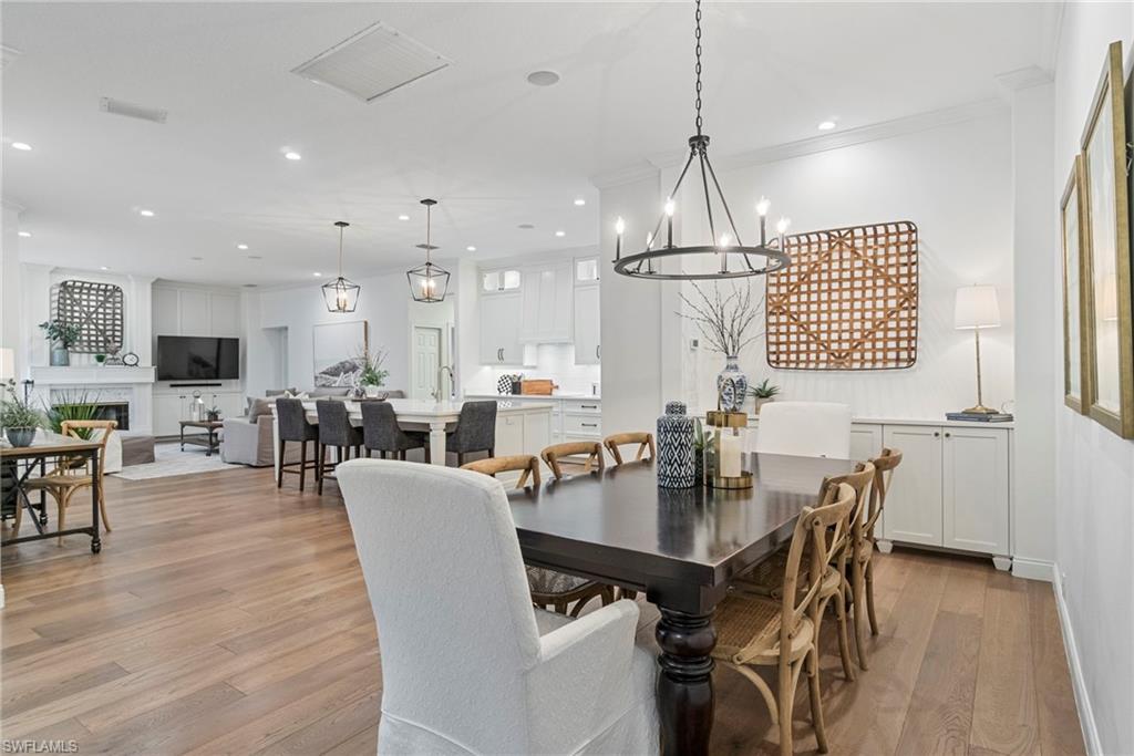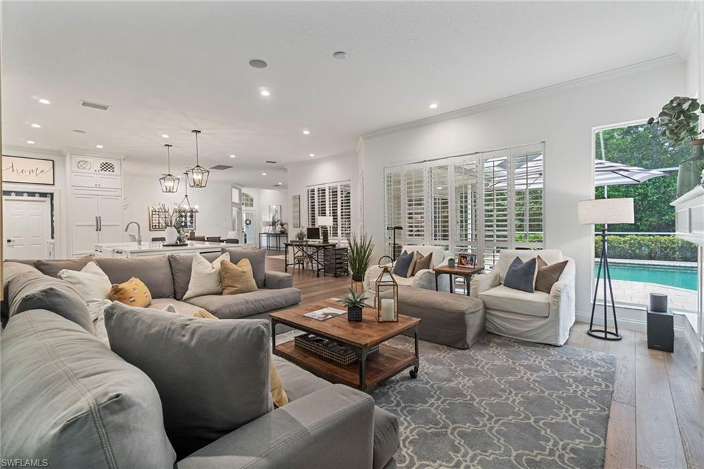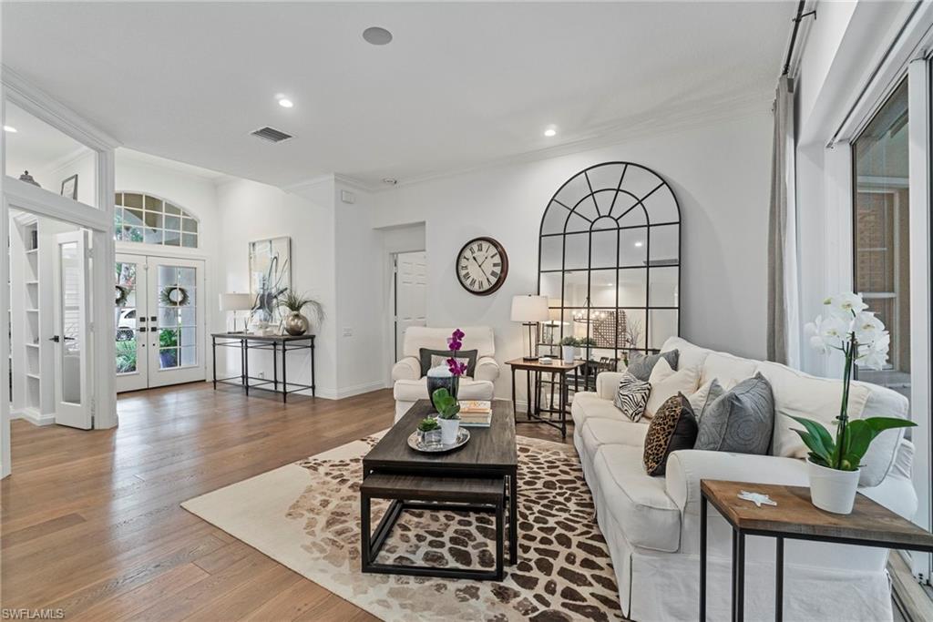 Welcome to Wilshire Lakes where you’ll find this beautifully remodeled Southern-exposure residence, perfectly located on a large wooded lot, offering ultimate privacy with lush preserve views all around. The shaded front yard with majestic oak trees welcomes you into a home filled with charm and modern upgrades. The heart of this open concept home is the gourmet kitchen with large center island, custom cabinetry, quartz countertops, and top-of-the-line appliances including built-in Jennaire refrigerator, Wolfe induction cooktop, Jennair wall ovens with warming drawer, tiled backsplash and farmhouse sink. The expansive split floor plan features wide-plank white oak hardwood flooring, four bedrooms, office or fifth bedroom and three fully remodeled bathrooms (including a convenient pool bath). Charming details throughout include crown molding, custom built-ins, a wood-burning fireplace with charming mantle, walls of sliders for all day sunshine and plantation shutters in all main living areas and owner’s suite. A three-car garage and large closets provide abundant storage. Designed for effortless indoor-outdoor living, the home’s backyard invites you to unwind in total privacy. Offering preferred southern exposure, the paver deck, covered lanai, and sparkling heated saltwater pool and spillover spa offer privacy with lush preserve views. Wilshire Lakes is nestled within a private preserve of 254 acres of scenic lakes and woodlands. Just minutes away, you’ll find some of Southwest Florida's finest beaches, as well as the upscale Mercato shopping and dining district. The community of Wilshire Lakes also features a clubhouse with fitness center, a community pool and tennis courts, as well as 24-hour guard gated security. Don’t miss the opportunity to make this special home yours!