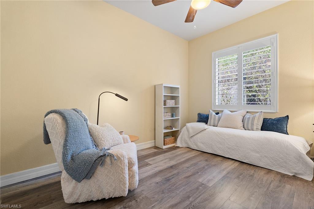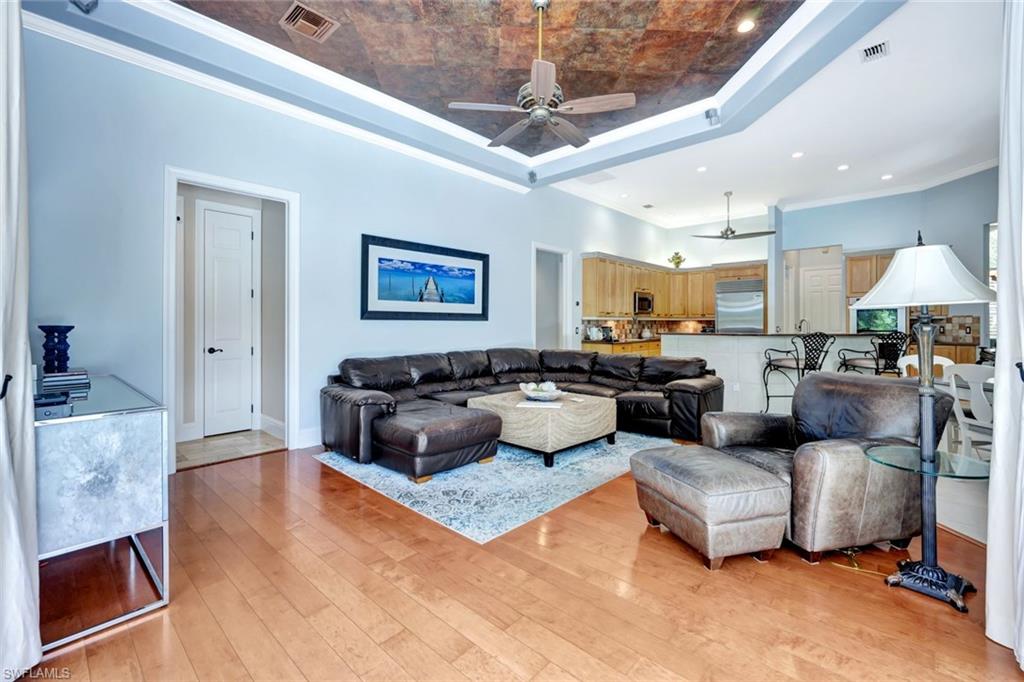 This custom-built single-family lakefront home is priced to sell and is significantly below market value. The open 4 bedroom plus den and two separate living area property features a newer flat-tiled roof, which was replaced in 2021. From the etched glass double front doors, there is a stunning view of the pool and spa, and the lake beyond. It opens to a large open living room with wide sliding glass doors to the lanai. The central kitchen has high-quality wood cabinetry and a breakfast nook in front of a huge bay window with stunning lake views. On the other side of the kitchen is a family room with wood floor-to-ceiling bookcases and a mounted TV. It has a large sliding glass door to the lanai, which when opened in addition to the living room sliders, provides a large al fresco entertainment area. The home has 14-foot ceilings adorned with crown moldings and newly painted walls, creating an airy atmosphere. It has wood plantation shutters as window treatments. The primary bedroom and expansive bath have its own wing on one side of the house with outdoor access. Three additional bedrooms have their own privacy on the opposite side of the home. Besides the shared guest bath, it has a full pool bathroom with convenient outdoor access to the lanai. It also includes an oversized two-car garage with overhead storage of clear storm shutters and Armor Storm Screens for lanai. Wilshire Lakes is a centrally located gated community with large lots, plentiful lakes and tree-lined streets. It also features two clubhouses with resort-style pools, a spa, clay tennis courts, and the incredibly low HOA fees include high-speed internet and cable. The community is easily accessible with its own traffic light and offers 24-hour guard-gated security. Just minutes away, you’ll find some of Southwest Florida's finest beaches, such as Vanderbilt Beach and Delnor-Wiggins Pass State Park, as well as the upscale Mercato shopping and dining district. Are you able to recognize a great deal when you see it?