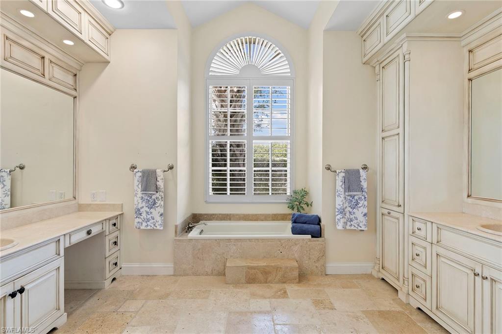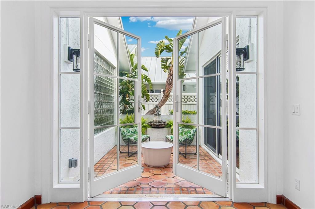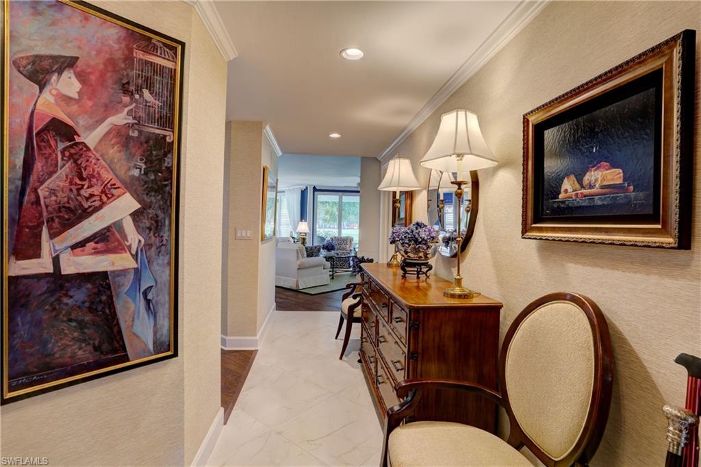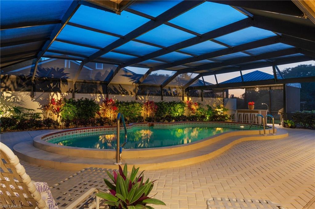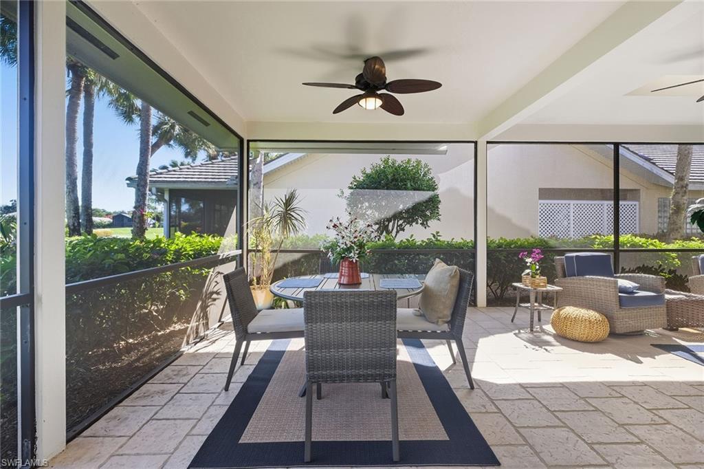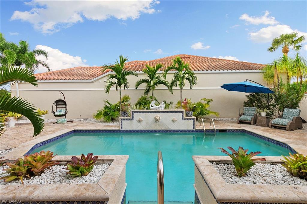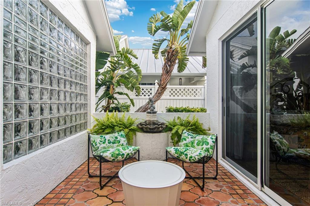 Tucked at the end of a quiet cul-de-sac in the Villa Floresta enclave of Wyndemere, this updated villa is a private retreat with, all the comforts of a single-family home and the lifestyle of a resort, located on the 3rd tee of Wyndemere's White course. Featuring an expansive courtyard with lush new tropical landscaping, a freshly painted interior, and timeless finishes including custom millwork and travertine floors, this home is equal parts relaxed elegance and effortless living. The heart of the home is the oversized courtyard saltwater pool which is heated, completely private and surrounded by lush tropical landscaping, not neighbors or golfers. Relax after a day on the links in a separate saltwater hot springs hot tub. This is a lifestyle property, designed for those who value peace, design, and connection. Wyndemere Country Club offers everything you need behind the gates: 27 holes of Arthur Hills-designed golf, 10 Har-Tru tennis courts, stadium pickleball, bocce, a staffed fitness center, two restaurants, and a full calendar of social events that make it easy to meet new friends and feel at home from day one. Positioned inland from the coast, Wyndemere offers a reassuring level of storm resilience while remaining just minutes from downtown Naples and the beaches. Whether you’re searching for a seasonal escape or a full-time lifestyle upgrade, this spacious, low-maintenance villa offers the perfect balance of luxury, privacy, and belonging.