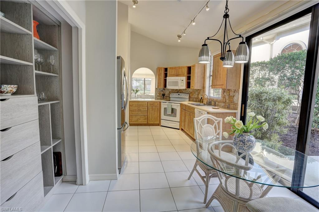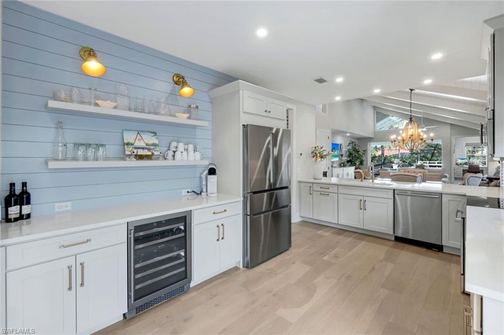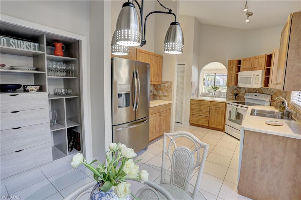 Immediate golf membership!! Enjoy expansive golf course views as you float in your pool or relax on your spacious lanai featuring window pane screening and its newer refinished travertine tile decking. Welcome to Wyndemere Country Club in the sought after Villa Floresta enclave. This extensively updated single family home overlooking the 3rd fairway on the white course is where lifestyle and luxury meet. Soaring ceilings, airy and bright open living spaces has just been freshly painted. Featuring 12" wide plank tiles which extend seamlessly throughout the entire residence. The completely reimagined kitchen now opens to the living area and features shaker style cabinetry, stone countertops, a sleek exhaust hood and custom pantry area. Entertain effortlessly at the new custom tile built in bar, complete with Subzero refrigerator drawer and ice drawer. Additional upgrades within the past year also include coastal shiplap, new vanity refreshing the half bath, custom closet organizers in guest bedroom, new exterior lighting, EV charger in garage and more. Your furry friends will enjoy the fully fenced yard. Wyndemere is a Platinum Club that offers 27 hole Arthur Hills designed golf course surrounded by beautiful lakes and is a member of the Audubon Cooperative Sanctuary. The Clubhouse, state of the art fitness center with a full service spa, resort style pool, 10 Har Tru tennis courts, pickleball, bocce, croquet, 2 restaurants, a new outdoor bar/dining and golf learning center and a fun and active social calendar. Wyndemere truly has it all, centrally located close to Naples stunning beaches, dining and shopping, if you can manage to leave your perfect oasis in Wyndemere! Here is you opportunity to come home and enjoy vacation inspired lifestyle, luxury living everyday!