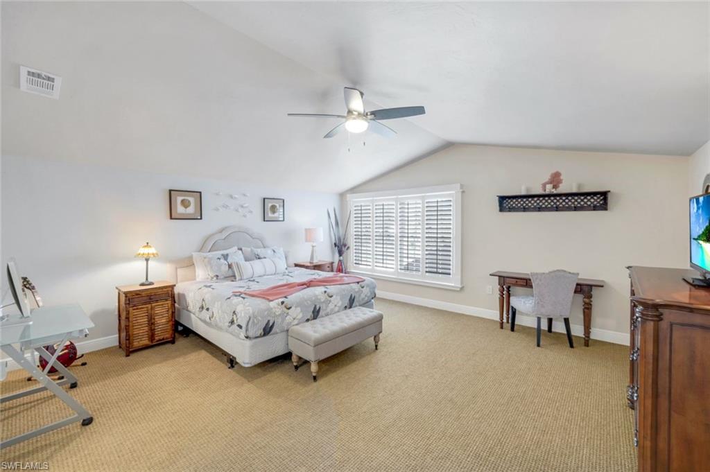 Outstanding location, views and light are the definition of this beautifully updated 3br/3ba single family home in sought after Golf Cottages of Wyndemere. Welcome to 28 Golf Cottage Drive, ideally situated at the end of a lovely tree-lined cul-de-sac, on one of the largest and most private lots in the neighborhood with sweeping 180 degree views creating an exceptional backdrop of light and scenery from sunrise to sunset. Inside, the home has been extensively renovated for style and comfort. The newly updated kitchen features quartz countertops, modern cabinetry, and an induction cooktop—perfect for everyday living and entertaining. The ground-floor primary suite includes a new spa-like bathroom with dual vanities and an oversized walk-in shower, creating a serene retreat. A second bedroom and renovated bathroom on the main level provide flexible living options, while an additional upstairs guest suite—with its own long-range views—provides comfort and privacy for visitors. The main living area boasts soaring vaulted ceilings and abundant natural light, complemented by a built-in bar/drinks /coffee station perfect for entertaining. Ample storage is thoughtfully integrated throughout, including in the garage. Outdoor living is equally impressive. A sunny pool with integrated spa and tranquil water feature is framed by a newer nearly 2,000 sq. ft. composite deck—ideal for entertaining or relaxing in the Florida sunshine. A fenced yard ensures privacy, while the screened lanai and inviting front porch offer additional serene spaces. Recent major updates include a new roof (2024), new A/C (2025), and a whole-house generator with a 500-gallon tank for peace of mind. Wyndemere Country Club is one of Naples’ premier gated communities, offering 27 holes of Arthur Hills–designed championship golf, a newly renovated clubhouse, resort-style infinity pool, state-of-the-art fitness and spa center, 10 Har-Tru tennis courts, pickleball, bocce, croquet, and a vibrant social calendar. HOA fees cover grounds maintenance and irrigation for low-maintenance living. Just minutes from downtown Naples, Gulf beaches, and the airport, this home combines luxury, lifestyle, and location. Move right in and enjoy the best of country club living at Wyndemere.