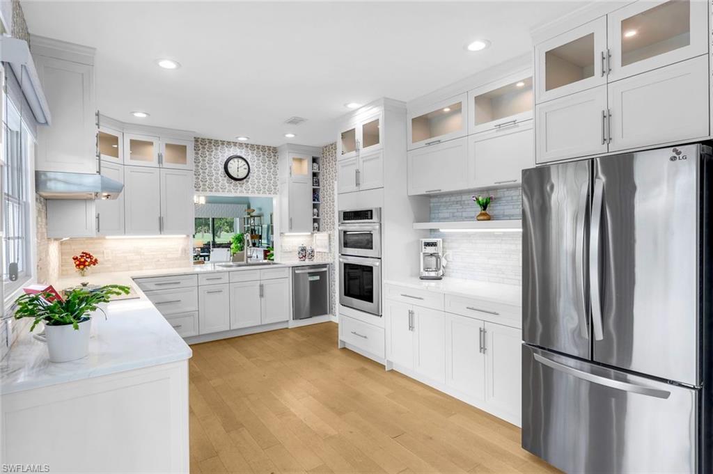 Immediate Golf Membership …………with this Lovely golf and lake front home at Wyndemere. Three bedrooms 2.5 baths. 2419 sf........ Totally remodeled kitchen, baths, & flooring with high end finishes all done in tasteful colorful spaces. Guest en-suite room, delightful open patio , plus a large screened lanai looking at the great views........ Furniture negotiable. ……. High end professional decor . light and bright remodeled kitchen with abundant windows, quartz counters, new cabinets and fixtures. Fire place, vaulted ceilings , refinished guest bath and laundry room make this home an 'easy move-right-in' and a Must see ! .......... All at Wyndemere , Naples finest golf-tennis-pickle-croquet community....... Add in the new Resort Pool and Hollywood style Spa with every pampered feature imaginable. And casual and fine dining restaurants that everyone can enjoy. ......... Just off Livingston and Pine Ridge with a close-in location to Naples beaches , downtown, and shopping. ......... you will enjoy seeing this home !