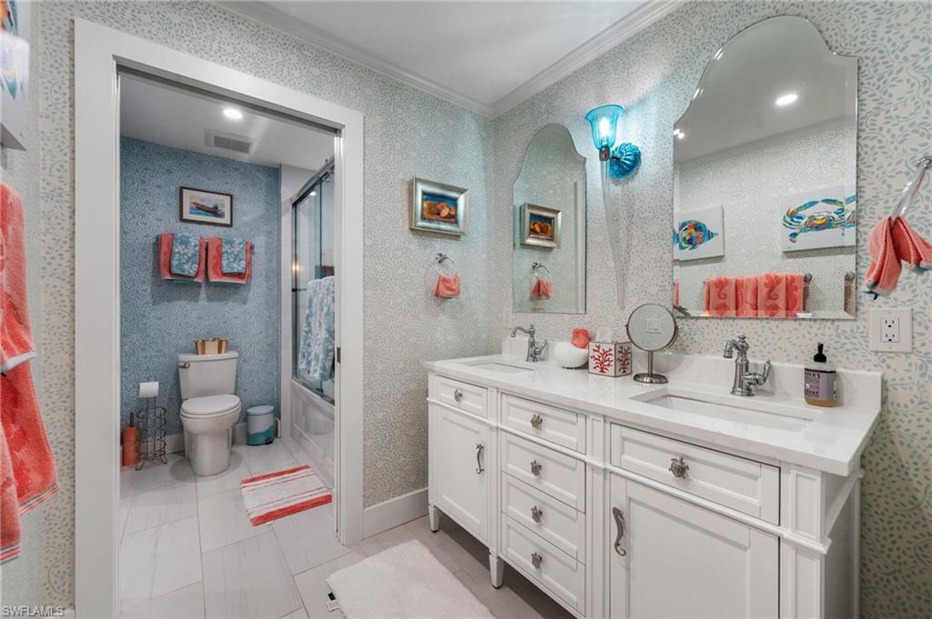 This is a gem of a property in the highly desirable neighborhood of Pond Apple overlooking the preserve. Quiet and private, with spectacular water views. Beautifully landscaped and renovated with attention to every detail. 5000 sq ft of indoor and outdoor living space. Kidney shaped pool with plenty of outdoor entertaining areas. 3 bedrooms plus a bonus room for extra guests or to use as an office. The 2 guest rooms each have their own dual vanity sinks with a connecting shower and commode. Brilliantly designed and tastefully decorated with modern lighting, ornamental wall sconces, stenciled walls, and stenciled tile flooring. The open living dining kitchen area all have water views and loads of natural light. Completely renovated inside and out with Hardy plank siding. Separate laundry, attached 2 car garage. Wyndemere offers immediate 27 holes of Arthur Hills golf, 10 HarTru tennis courts, pickleball, bocce, croquet, resort-style zero entry pool, state of the art fitness center, w/full spa services & group exercise classes. New activity center with circular outdoor bar and pickle ball stadium for exhibition matches with seating for 165! Enjoy indoor/outdoor casual dining at the Tiebreaker and a lively social schedule of events/parties at the club. Wyndemere, a gated premiere 2025-2026 Platinum Club of America, known for its friendly and welcoming membership, is ideally located within minutes to world class dining, shopping and the spectacular sugar sand Gulf beaches. Move right in and start enjoying this amazing club and our fabulous Southwest Florida lifestyle!
