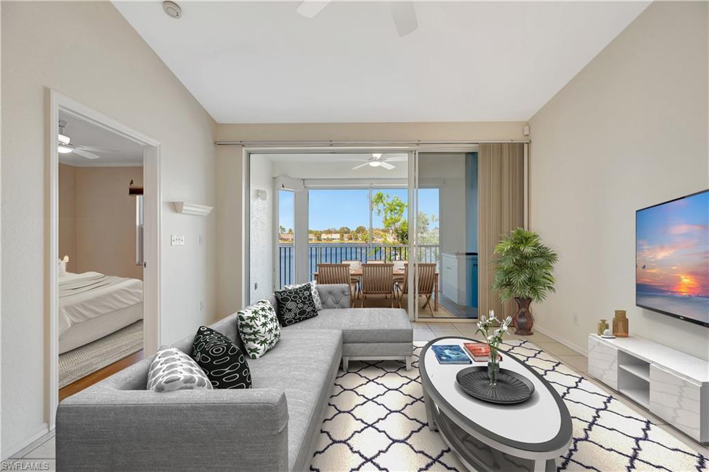 PRICED $55,000 BELOW MARKET VALUE (per Property Appraiser)! Condo next door (#202) recently sold for $465,000. Quarterly FEES have just been significantly REDUCED! Experience gorgeous sunsets and panoramic views over the 37 acre Crown Pointe Shores Lake from your 2nd floor coach home lanai, complete with a built in outdoor grill. NEW ROOF and Gutters with only 4 Condos per building, each being an END UNIT. This spacious 2 plus den condo boasts soaring ceilings plus electric and manual shutters on all windows and sliders adding to the peace of mind in this highly coveted, flood zone free, amenity rich community. The open den can be enjoyed as a playroom, media room or office while the ample hall closet can be converted to an elevator if the need arises. Newly renovated tub & shower plus granite countertops and stainless steel appliances grace the open and spacious kitchen. A single car garage and long driveway provide parking for several vehicles and there is also guest parking across the street--bordering to the tranquil preserve. Enjoy kayaking from your private "beach" behind the condo or take advantage of the resort like clubhouse complete with heated pool, SAUNA, fully equipped kitchen, work out room, pool table and fishing pier. Active residents can participate in Pickleball or Tennis or take a Bike Ride on the adjacent Rich King Memorial 3 mile paved bike path or cruise to nearby Publix. If you enjoy friendly neighbors and a busy social calendar, Crown Pointe is for you! Daily Water Aerobics, exercise classes, Mahjong, Cards, Dominos & Happy Hours are just some of the many activities available for all residents. PET FRIENDLY with 2 allowed of any size--pending approval. Just minutes to downtown Naples shops, restaurants and white sandy beaches---this is THE BEST OF SWFL! Paradise Awaits!