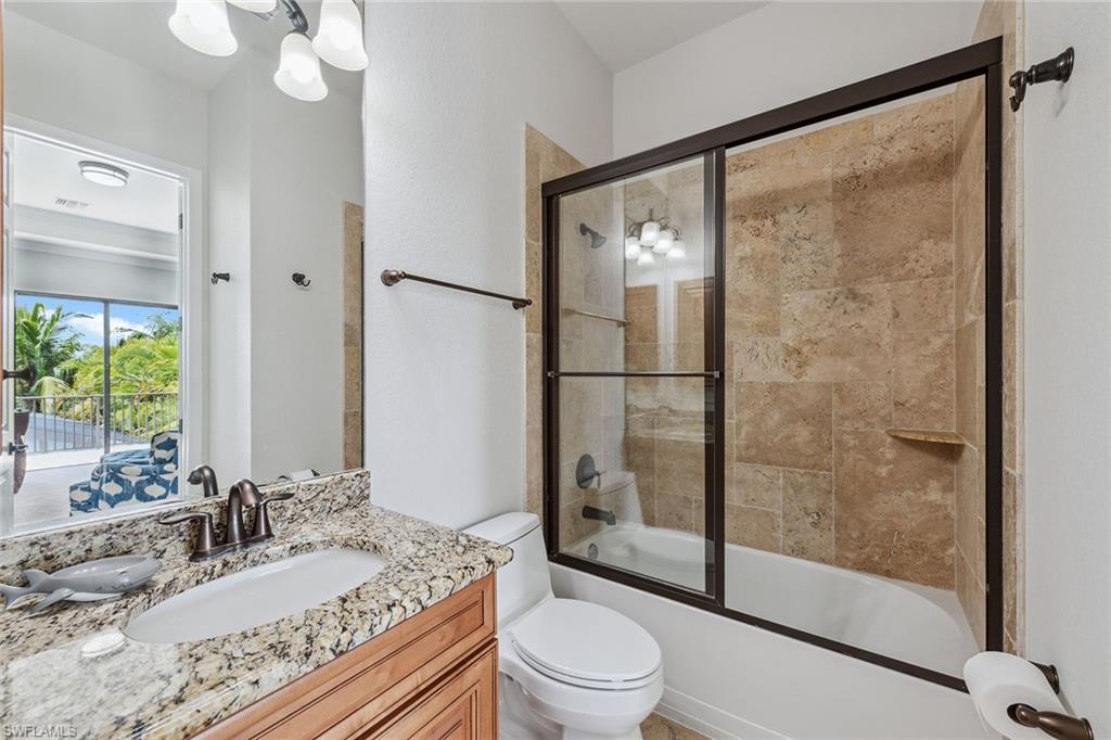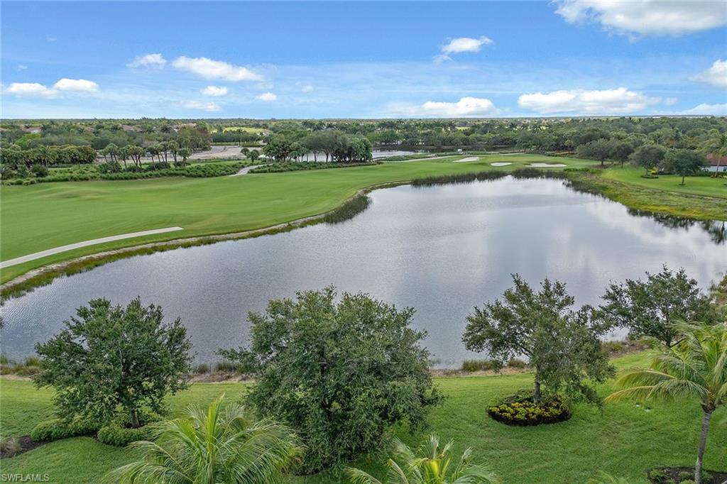 Are you searching for a home with expansive, unobstructed views of the lake and golf course, framed by lush tropical landscaping and designed for elevated coastal living? In the desirable Runaway Bay enclave of Fiddler’s Creek, this rarely available, two-story Lantana floor plan offers a spacious and refined lifestyle with four bedrooms, two dens, a family room, a bonus room that can serve as a fifth bedroom, three full baths and two half baths. This gracious single-family residence includes a side-entry three-car garage with epoxy flooring, a tankless water heater, all impact-resistant doors and windows, and a newer two-zone HVAC system for optimal comfort. A wide brick-paved driveway leads to a welcoming entrance, where travertine flooring spans the main level and is accented by tray ceilings, crown molding and arched walkways. The gourmet kitchen is a standout, featuring a center island, bar seating, pantry, tile backsplash, recessed lighting and stainless steel appliances, including a natural gas range with hood, built-in microwave, wall oven, dishwasher and a French-door refrigerator with icemaker. The kitchen opens to the family room and breakfast area, where a large corner window frames peaceful views of the lanai and pool. Adjacent, the living room transitions seamlessly to the screened outdoor space through sliding glass doors, creating an indoor-outdoor living experience. The formal dining room provides a sophisticated setting for entertaining. Go outside to the private lanai, a retreat with a heated pool and spa, and a tranquil waterfall feature. The outdoor kitchen includes a stainless steel grill, mini refrigerator, sink and convenient pool bath, all within a picture screen enclosure that maximizes the spectacular views. A den with French doors on the main level offers flexibility for a private office or study. The primary suite is a sanctuary, offering serene views, lanai access, dual walk-in closets, and a luxurious en-suite bath with dual vanities, full-width mirrors, a walk-in shower and a separate soaking tub. A wooden staircase leads to the upper level, where three guest bedrooms and a flexible bonus room await. This upper bonus room—with a kitchenette and balcony access overlooking the lake and golf course—can function as a media room, game room or fifth bedroom. Two additional baths serve the upstairs rooms—one with dual vanities and a walk-in shower, the other with a shower-tub combination. A second den, thoughtfully designed above the foyer in 2021, offers an additional private office or flex space. Completing the home is a well-equipped laundry room with washer, dryer, utility sink and upper cabinetry. Enjoy exclusive access to the award-winning Club & Spa with resort-style pools, fine/casual dining, a state-of-the-art fitness center, spa, sauna, tennis, pickleball, bocce and a full calendar of social activities. Optional memberships are available.