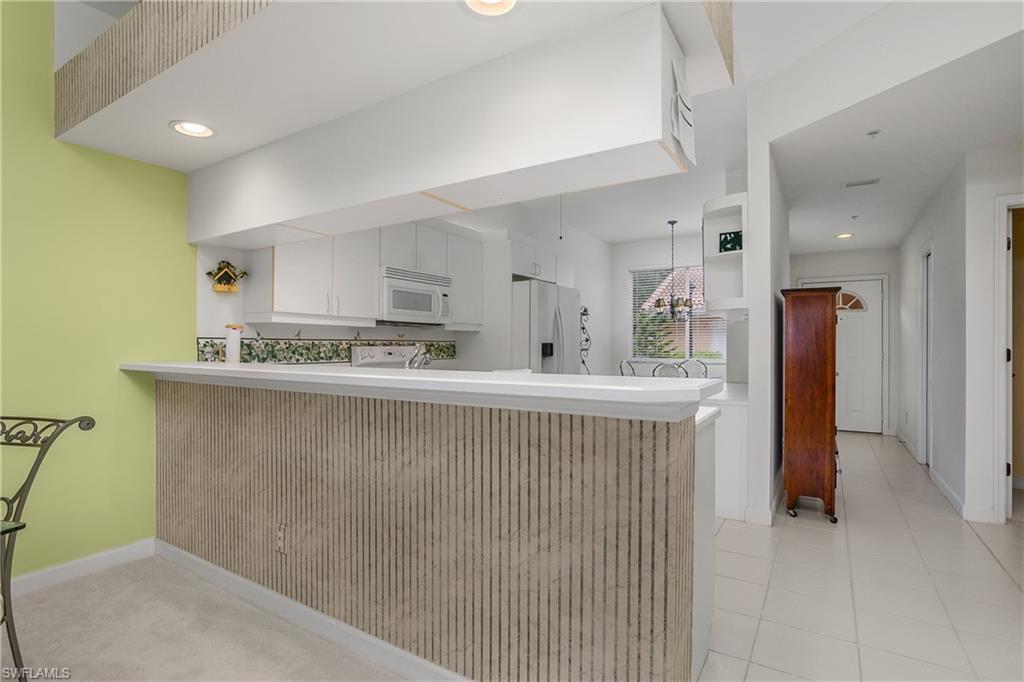 Spacious 2-bedroom, 2 bath Condo. Meticulously maintained. Furnished. This condo features new carpet and updates throughout, tile in all wet areas. New A/C & hot water tank in 2025. Planter sills, 9 Ft. ceilings, breakfast bar, Relaxing water view & fountain view from your very own private lanai. Includes a summer kitchen with southern exposure. Manuel hurricane shutters for privacy and protection from weather. Enjoy resort-style amenities with lap pool, lazy river pool, pickleball, biking & walking paths, many social activities at the Club House. Everything you need for a vibrant active lifestyle.