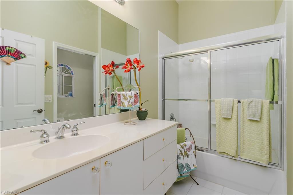 Beautiful, bright & spacious... This second floor 2BR/2B condo is conveniently located across the street from the lap pool, pickleball, tennis & the Mondago exit...Vaulted ceilings give you a grand feeling from the minute you enter the unit...Coastal feeling with your vinyl flooring & beautiful & neutral furnishings & decor, all included in this TURNKEY property. Your favorite room in the house will be the 300 Sq Ft LANAI enclosed with glass doors for A/C on a hot day, clean floors on a rainy day, & on those magnificent days, a tropical breezes when you open them up!! Very large primary bedroom w/ walk-in closet & bathroom with his/hers sinks...This amazing community is home of the famous RESORT STYLE LAZY RIVER POOL, A MUST SEE!! One lap around & you will make many new friends. Lots to do in season as BOCCE & PICKLEBALL HAS MANY PLAYERS!! Marco Island & Downtown Naples are equal distance away & offer fabulous dining, amazing shopping & endless white sand beaches...Turnkey w/ everything included, you are all ready to enjoy PARADISE!!