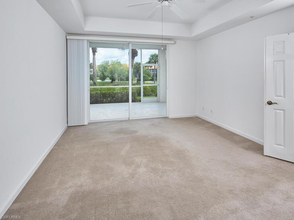 Falling Waters Beach Resort is an exclusive, gated condominium community offering a serene and private lifestyle—just a 15-minute drive to the beaches of Naples or Marco Island. This spacious first-floor residence features 2 bedrooms and 2 bathrooms, along with a detached one-car garage. The home boasts a freshly painted interior and new appliances, including a refrigerator, microwave, electric range, and dishwasher. A separate laundry room provides added convenience. Enjoy relaxing or entertaining on the oversized screened lanai, complete with an outdoor kitchen and tranquil lake views. Residents have access to resort-style amenities, including a spectacular lazy river pool, lap pool, tennis and pickleball courts, and bocce ball. Whether you choose to move right in or customize the space to your taste, this home offers exceptional potential in a prime location close to shopping and dining. Nearby stores include Fresh Market, Publix, HomeGoods, Lowe’s, Ross, Ulta, Marshalls, Walgreens, and many more. A variety of restaurants, cafés, and breakfast spots are located just outside the community gates.
