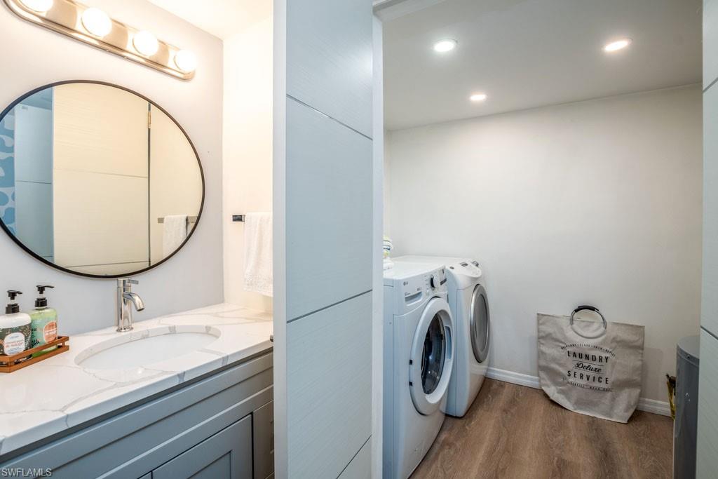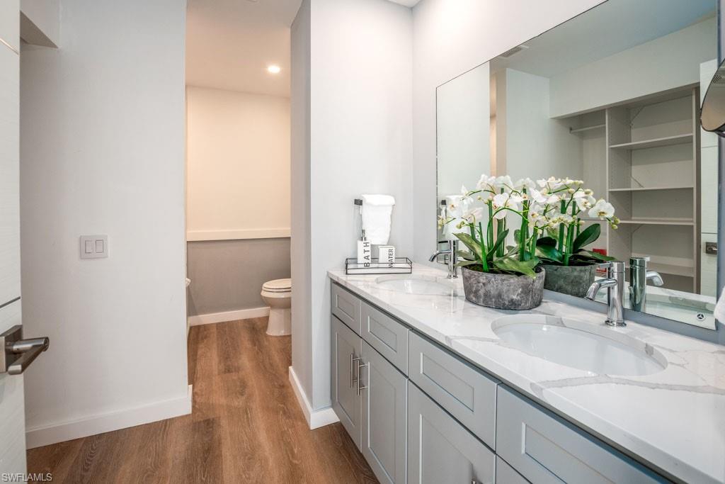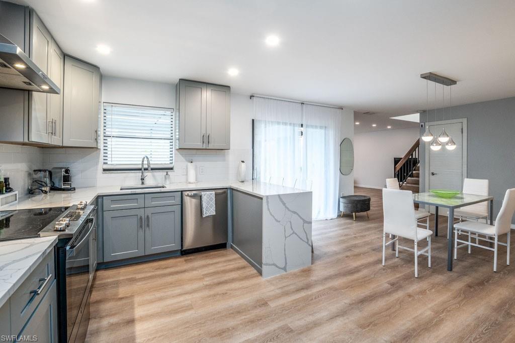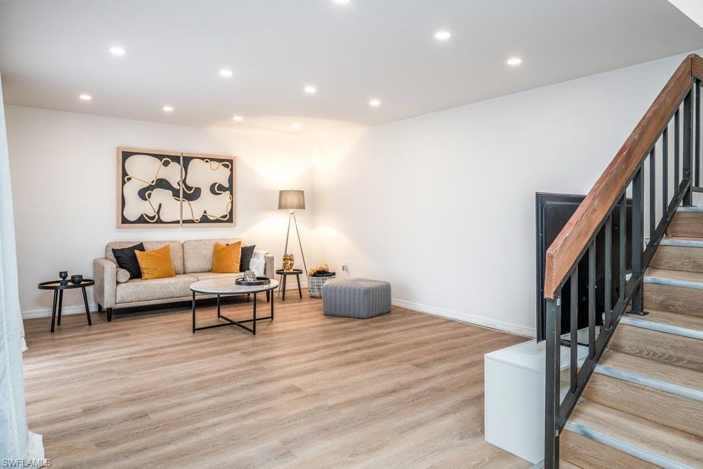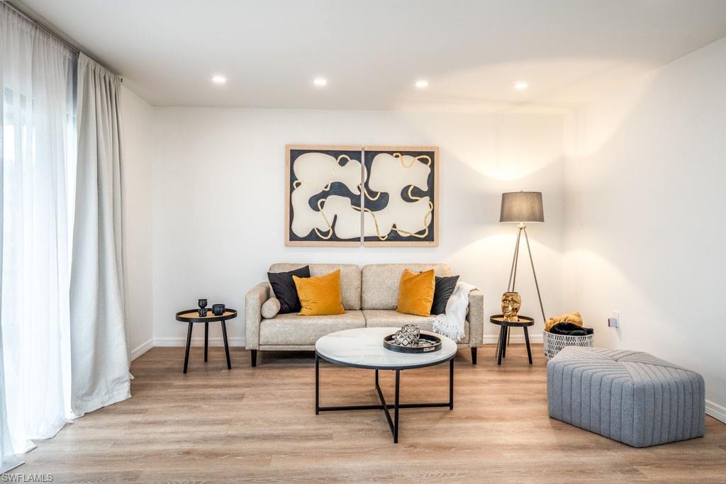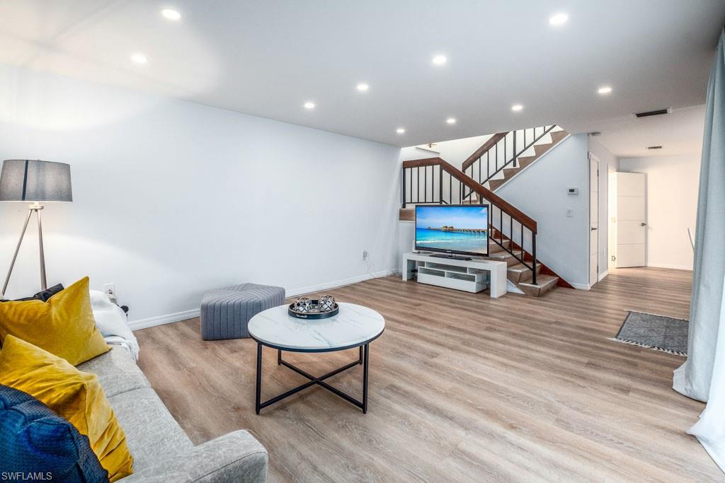 A fully renovated Townhome in Bayberry of Naples Florida. This stunning two bedroom, two full and one half bathroom property boasts updates throughout. NEW ROOF 2023. New water-heater /October 2024. The eat-in kitchen offers all new shaker style cabinetry, quartz countertops, subway tile backsplash, newer stainless steel appliance package, farmhouse sink, breakfast bar with storage and waterfall accent top. The master bathroom and guest bathroom share similar updates including, all newer vanities with quartz countertops, sinks and fixtures, fully tiled shower stall and tub surround and custom, fully automated shower heads. Laminate wood looking flooring throughout, recessed lighting in all the main living areas, light features, remote control ceiling fans with lighting, widened interior doorways, imported European interior doors. A large courtyard is a perfect space to entertain your family and friends. A community pool is just a few steps away from your home. Just minutes to Naples golden beaches, and it's the perfect inspiration to start writing a new chapter in your Naples history. Bayberry is not 55+ community.