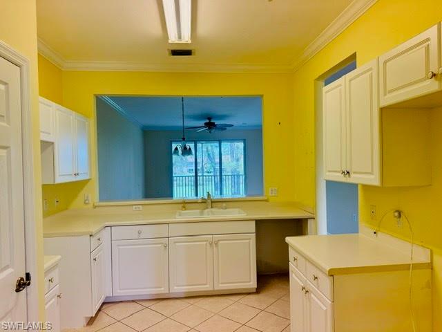 Enjoy the terrific view of the lake and golf course directly behind this beautiful 2nd floor condo. This condo features high ceilings in the kitchen, dining and living areas as well as tile on the diagonal and crown molding. In addition to the dining area you’ll find an eat-in-kitchen. The master bath features 2 separate sinks, separate shower and soaking tub. Double closets in the master bedroom allow for extra storage. Enjoy the lanai and watch the golfers and wildlife.
