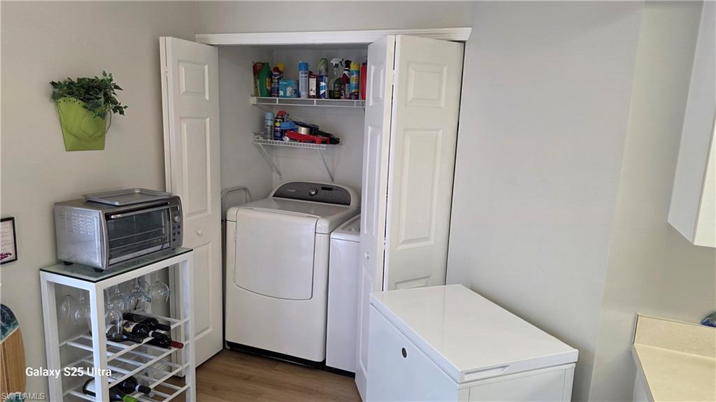 1ST FLOOR UNIT WITH A GARAGE IN BERMUDA PARK! This charming 2 bed, 2 bath, offers a perfect blend of comfort, style & convenience. As you step inside, you’ll be greeted by beautiful, updated hardwood birch floors, seamlessly extending from the entryway to the living room & into the primary bedroom. The rich tones of the flooring add a touch of elegance to the space. Two sets of sliding doors leading to the spacious, screened lanai allow plenty of natural light to filter in, creating a bright & welcoming ambiance. This unit comes complete with a 1-car detached garage, providing secure parking & additional storage space for your convenience. Bermuda Park itself is a community that offers a serene environment, with well-maintained common areas & amenities for residents to enjoy, designed to enhance your living experience. Just minutes away from Bonita Beach Rd, you'll have easy access to the area's main thoroughfare, allowing for a quick commute to the pristine beaches of Bonita Beach. Additionally, the proximity to shopping & dining options ensures that you are never far from the vibrant social scene & the amenities that make Bonita Springs a sought-after destination.