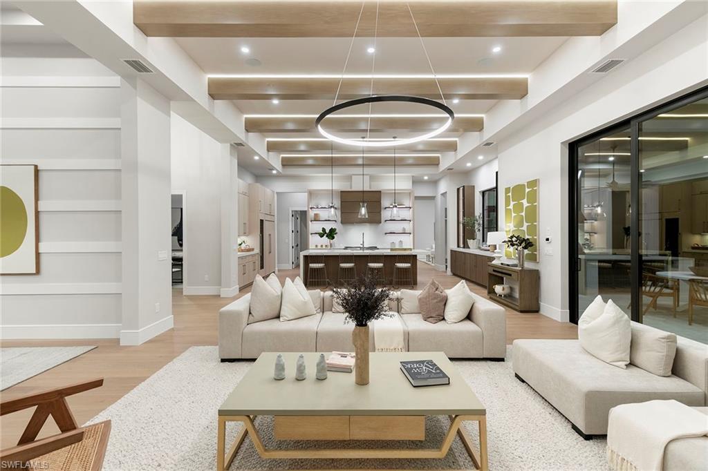 Welcome to a rare opportunity in Bonita Bay – a brand-new custom home by Imperial Homes of Naples in the intimate Woodlake neighborhood. Designed for those who want luxury without excess, this thoughtfully scaled residence delivers exceptional craftsmanship at a more approachable price point than larger golf course estates. Featuring wide-plank wood floors, soaring custom ceilings and a chef's kitchen with top-tier finishes, every detail reflects timeless craftsmanship. The open living room is complemented by a spacious game/flex room, creating a second gathering space ideal for entertaining family and friends. The baths showcase high-end designer touches, and the tranquil primary suite offers a spa-like retreat. Step outside to a private tropical oasis where a sparkling pool is framed by lush landscaping, ensuring every window captures vibrant greenery and privacy. The interior lot location provides peace, seclusion and the best of Bonita Bay living without the premium of a golf or lakefront setting. It even features a secure package delivery room in the garage. Enjoy all the amenities of Bonita Bay including five golf courses (with private membership), a marina with restaurant in the neighborhood, miles of walking trails, a fishing pier, a private beach park with shuttle service, and more, all within one of Southwest Florida's most sought-after communities.