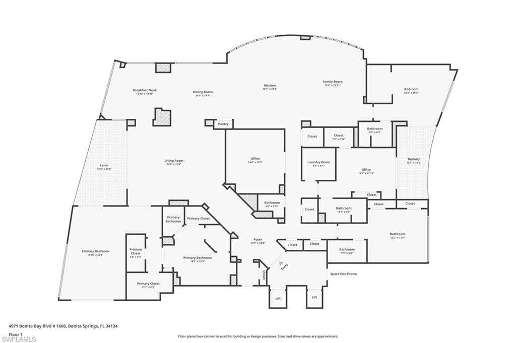 This iconic residence crowns the 23rd floor of Seaglass at Bonita Bay, where two units have been masterfully combined into a singular, 6,000-plus-square-foot designer showcase with expansive outdoor living. Every inch reflects opulence and visionary artistry by the renowned Collins & DuPont team, earning its feature in Florida Design Magazine for elevated, livable design. Framed by uninterrupted Gulf and Bay views through soaring floor-to-ceiling windows, the condominium offers a sensation of floating above it all like a bird in flight. Western-facing balconies offer retractable screens and hurricane shutters, creating year-round comfort and protection while delivering front-row seats to the Gulf’s ever-changing canvas and majestic sunsets. The great room flows effortlessly into multiple living and entertainment spaces: a piano nook, lounge area, pool table zone and dining—all anchored by a gourmet kitchen that would make any chef swoon. Rich wood tones contrast against crisp quartz countertops, a sprawling center island, and cabinetry that feels more like bespoke furniture. Even the view from the sink is striking. In the dining area, a custom wet bar elevates entertaining, while LED-lit radius ceilings add sculptural drama throughout. Even the powder room and laundry room shimmer with designer touches. The primary suite offers a serene, Gulf-facing retreat with a spa-style bath, oversized glass-enclosed shower, double vanities, and a boutique-style walk-in closet with multiple quartz islands. Two en-suite guest bedrooms on the east wing offer luxury and privacy for family and visitors. Two separate office spaces provide flexibility for remote work, hobbies, or can be easily converted into additional guest suites. A dedicated den offers an immersive cinematic experience. A private, air conditioned two-car garage and two additional parking spaces complete this rare offering. Your masterpiece in the sky awaits.