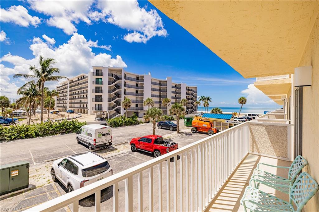Resort-Style Living by the Gulf of Mexico and Lush Tropical Landscape – A One-of-a-Kind Gem with 5th Floor Views! This bright and comfortable 2-bedroom, 2-bath condo offers an exceptional blend of location, lifestyle, and potential. New HVAC and Refrigerator 11/2025. Ready for your personal touch, this comfortable residence provides a great opportunity to create your own coastal retreat. The layout features tile flooring in the main living areas and carpeting in the bedrooms, with plenty of natural sunlight streaming through. Enjoy peace of mind with hurricane shutters on both the front and back of the unit—ideal for seasonal or year-round living. The building has been through a complete renovation after Hurricane Ian and now feels brand new, giving you the benefit of modern updates and long-term peace of mind. The community itself is truly one-of-a-kind, offering an abundance of resort-style amenities including a sparkling swimming pool right on the beach, tennis and pickleball courts, shuffleboard court, a social room for gatherings, a well-equipped fitness center, game room, library/remote office space, bike and personal watercraft storage, and scenic grilling areas. On-site property management ensures convenience and care. Unwind in the serene outdoor sitting area or take in the breathtaking Gulf views from your front lanai and watch the waves crash. Boat docks are available on property for purchase (subject to availability). Condo fees cover everything except electricity (cable included)—making this an effortless opportunity to invest in a slice of paradise.