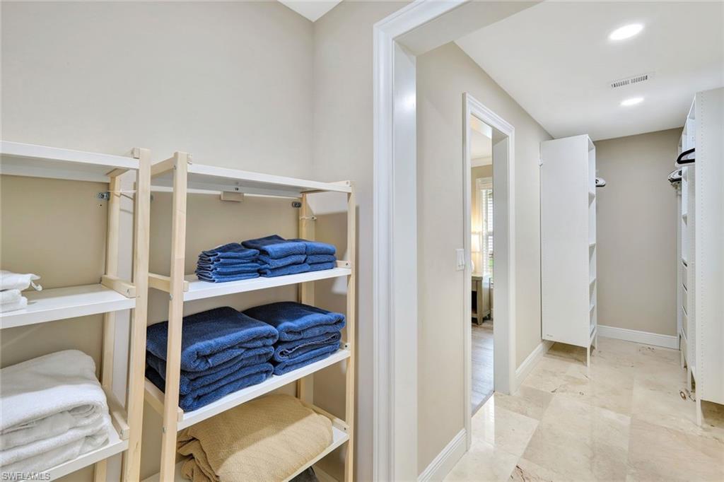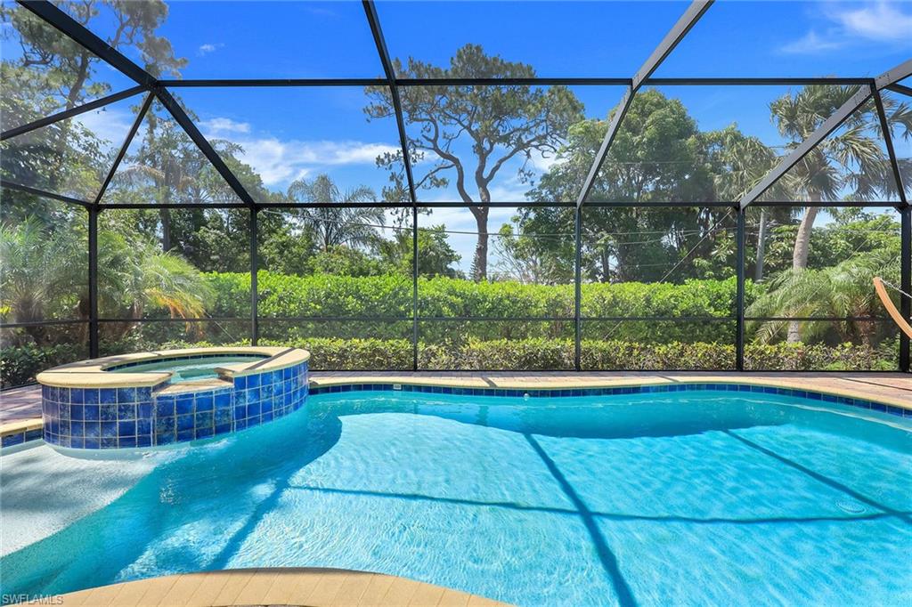 Beautifully updated piece of paradise! This 3 bedroom, 2 bath single family home sits on a tranquil quarter acre lot. Inside you will find no detail has been missed. Step in to the open kitchen and living area with marble floors, coffered ceilings, crown molding, Taj Mahal quartzite countertops, and island with bar seating. Both bathrooms are completely updated with granite countertops, new cabinetry, bathtub and tile shower. Privacy and space for all with the split bedroom floor plan. In the master you'll find custom built ins in the walk in closet, a secured owner's closet, and a private sliding glass door overlooking the pool and lake. Additionally, the home has all new impact windows and doors, a separate laundry room with laundry sink and storage. Relax outside in the oversized screened in lanai with plenty of covered space as you overlook the salt water, heated pool, tropically landscaped backyard and the naturally beauty of the calm lake. No rental restrictions, so make this home your own or take advantage of the rental opportunities. And bring your beach chairs and your boat as this home is located just 2 miles from Bonita Beach and has a members only private boat launch with direct gulf access for boats up to 23'.