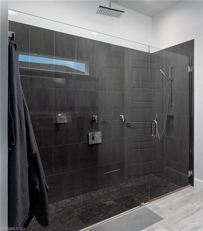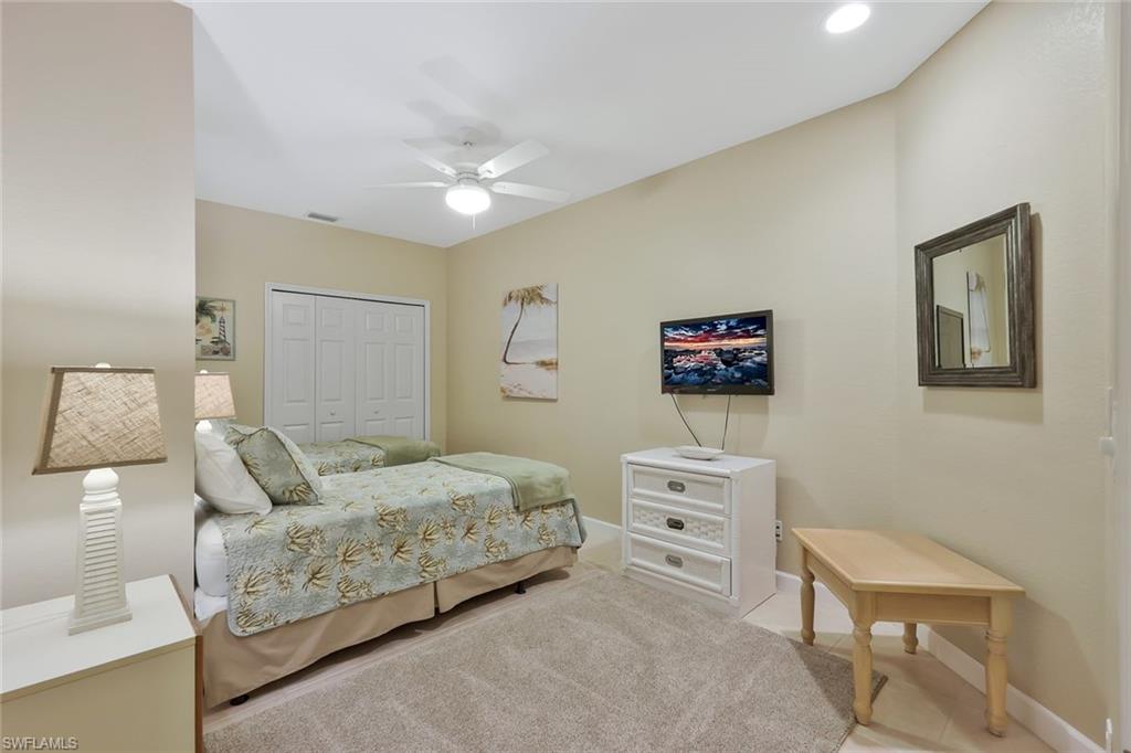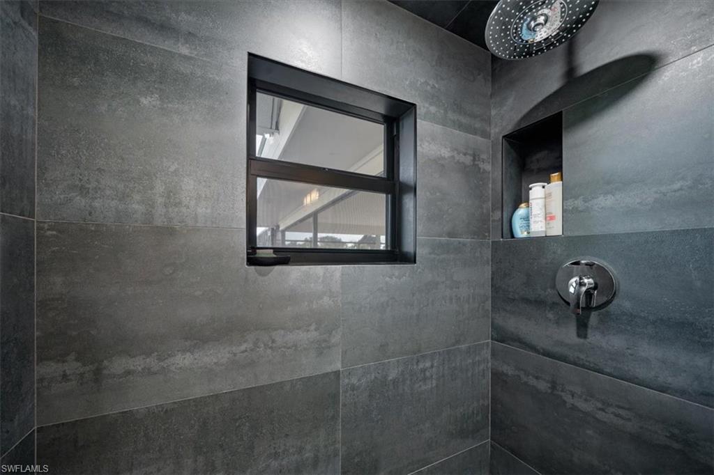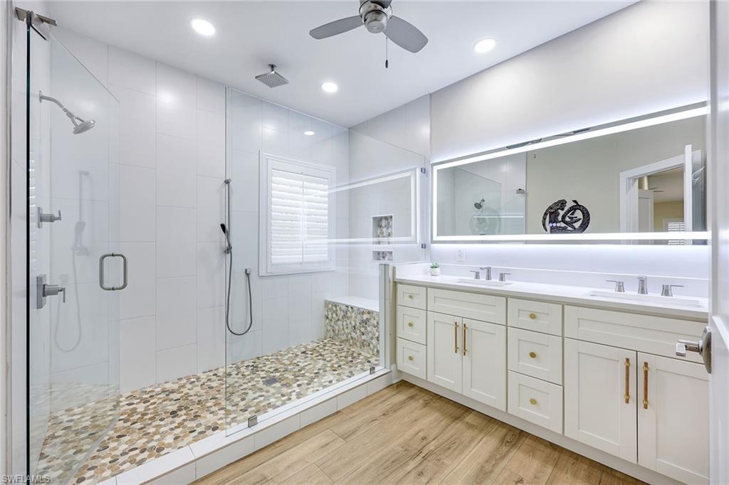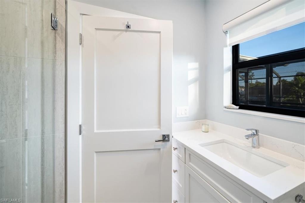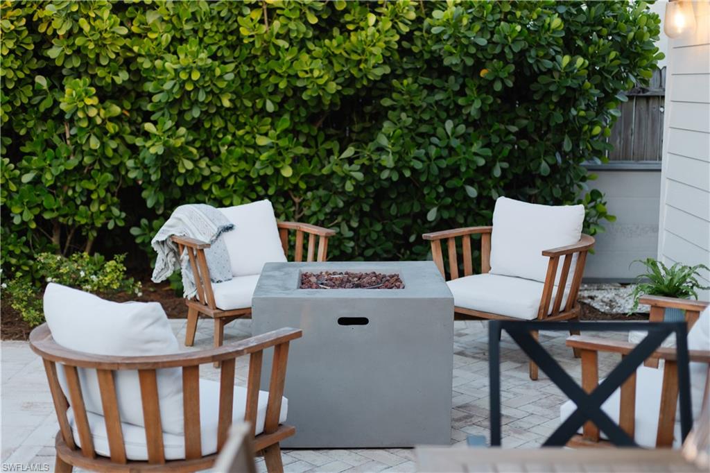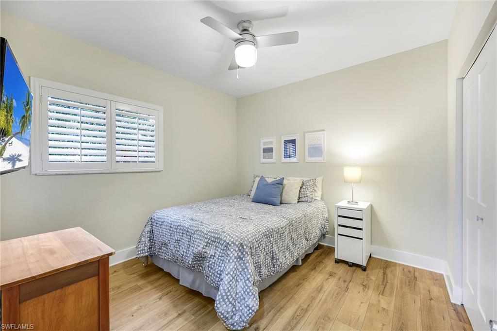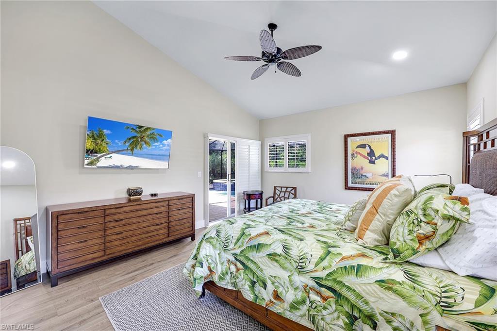 AMAZING RENOVATION & GORGEOUS CURB APPEAL! 1.2 MILES TO THE BEACH!! Noteworthy updates include a new roof in 2023, impact windows and sliders, a tankless water heater installed in 2021, and a 2020 AC unit. 2 fully remodeled baths - main bath is a STEAM SHOWER. The interior showcases a spacious great room with vaulted ceilings and exquisite detailing, complemented by “wood look” tiled flooring. The Shaker-style kitchen, the heart of the home, features an island with quartz countertops and an elegant tiled backsplash. A private guest wing offers its own entrance, a morning kitchen, and a serene patio off the bedroom, ideal for a peaceful retreat. Two additional bedrooms boast vaulted ceilings, ceiling fans, and generous closet space, providing a bright and airy feel. Outdoors, enjoy the Naples lifestyle with a newly renovated pool and spa adorned with mosaic tiles, stone coping, and a paver deck. The screened lanai overlooks the beautifully landscaped yard, creating a serene outdoor haven. A custom-built fire pit invites relaxation while you savor stunning sunsets over the lake from the western-exposure backyard. Additional outdoor features include a shed, LED landscape lighting lushly landscaped. Neighborhood has a community center, boat ramp and perfectly located steps to open waters, boating, kayaking, paddle boarding activities in this northern Collier County community.