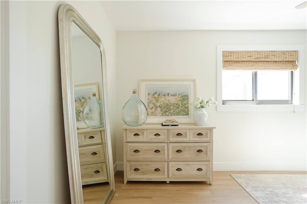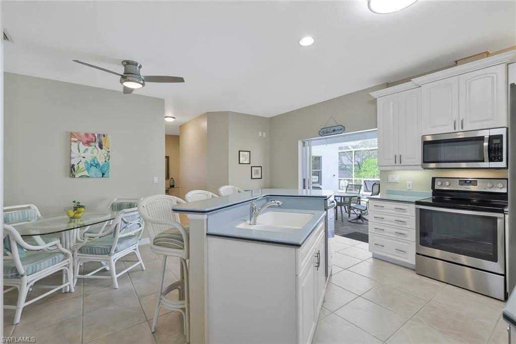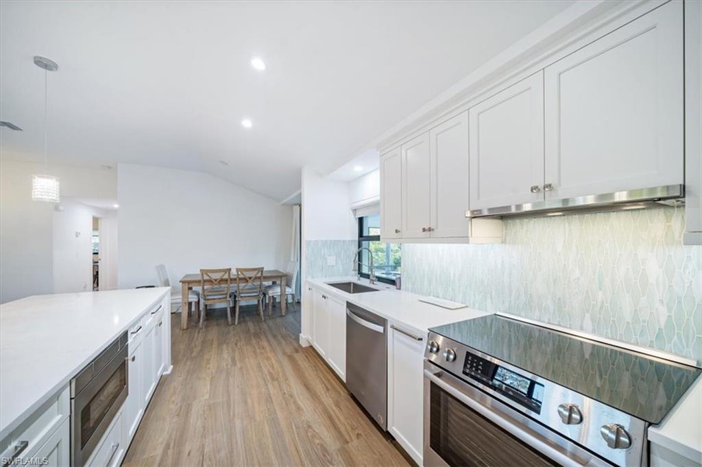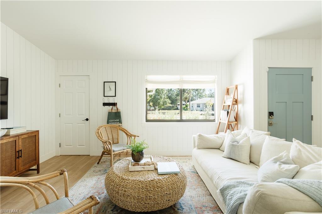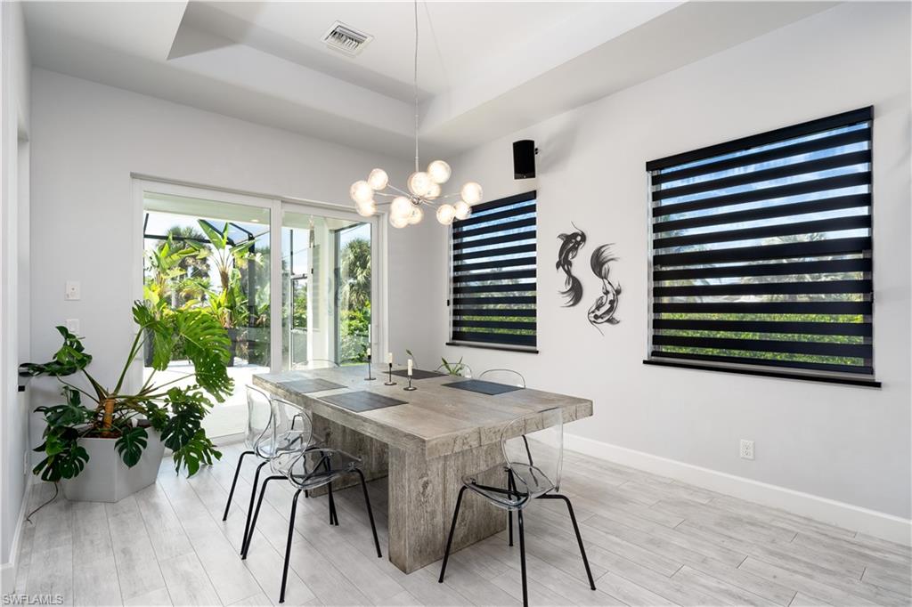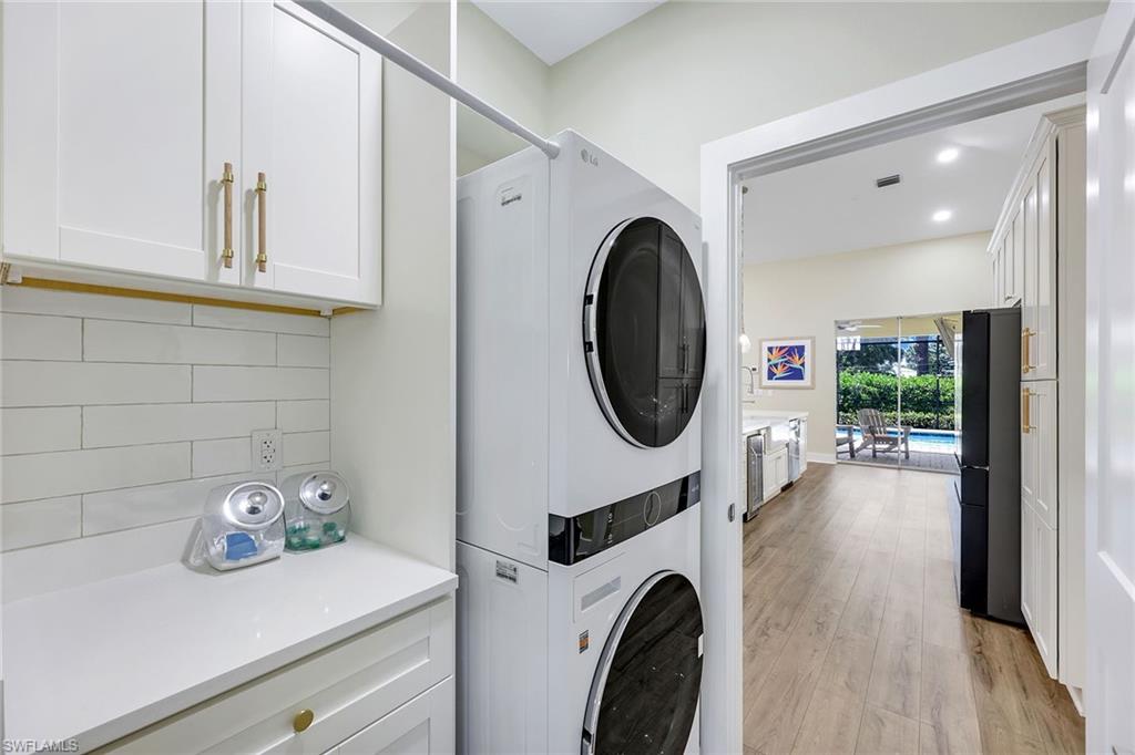 Discover the ideal blend of modern luxury and coastal charm in this beautifully remodeled three-bedroom, 2.5-bath residence, just minutes from the beach. Go inside to an open, airy layout with soaring volume ceilings, warm LED lighting, and premium LVP flooring throughout. The stunning new kitchen features an oversized island with Mystic Pearl Arista quartz countertops and is a spot for family gatherings and entertaining. Other kitchen upgrades include custom shaker-style cabinetry with stylish hardware, a farmhouse sink, a timeless tiled backsplash, built-in wine cooler and top-of-the-line appliances. The well-designed utility room offers a full-size LG stackable washer and dryer, folding station and ample storage. Additional upgrades include all new interior and closet doors, and fully renovated baths. The foyer accommodates a convenient powder room with access to the two-car attached garage. Go outside to your private oasis, complete with a heated pool and spa, paved deck and screen-enclosed lanai, ideal for relaxing or hosting friends year-round. A newer metal roof added in 2024 gives great curb appeal, peace of mind and long-term value. This move-in-ready home delivers comfort, style and an unbeatable location. Bonita Shores offers a member-only private boat launch with Gulf access for easy boating and a Collier County location. Close to Barefoot Beach and local restaurants, this one is an opportunity not to be missed!