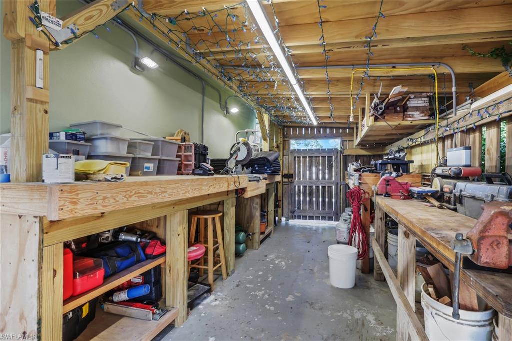 Rarely Available! After 22 years, the owner is moving—and this stunning four-bedroom plus den, two-bath, two-car garage pool home is ready for its next chapter. Perfectly positioned west of 41 in one of Southwest Florida’s most desirable locations, this home truly checks every box for today’s buyer: comfort, style, and functionality in a prime coastal setting just minutes from world-famous white-sand beaches, fine dining, boutique shopping, and Southwest Florida International Airport. Step inside to discover a freshly painted interior featuring industrial-chic, acid-stained floors in the bedrooms and primary bath—an intentional design choice that adds a sleek, modern edge with low-maintenance appeal. The recently renovated primary bath showcases elegant custom lighting, while the updated kitchenfeatures high-end cabinetry, granite countertops, and stainless steel appliances, including a refrigerator and dishwasher. Additional highlights include custom fencing, abundant garage storage with built-in cabinetry, and a separate workshopconveniently tucked beside the home. Outside, enjoy a caged pool, built-in fire pit, and ambient outdoor lighting—all surrounded by beautifully landscaped grounds that invite relaxation and entertaining. Meticulously maintained by skilled builder’s superintendent, this home benefits from thoughtful upgrades and an efficient drainage system. Recent improvements include a raised and replaced garage pump, updated garage door sensors, and a new outdoor pool pump—ensuring peace of mind for years to come. This home also weathered Hurricane Ian exceptionally well, no damage to cabinetry, flooring, or appliances. The home remained dry through both Milton and Helene. Located in a peaceful, sought after non-HOA community featuring a neighborhood feel and no restrictions, this property offers the ideal Florida lifestyle—perfect for year-round living or a seasonal retreat in highly desirable Collier County.