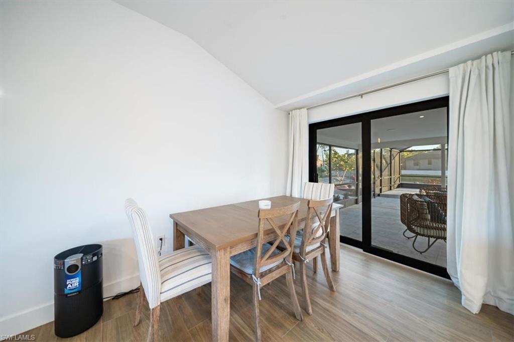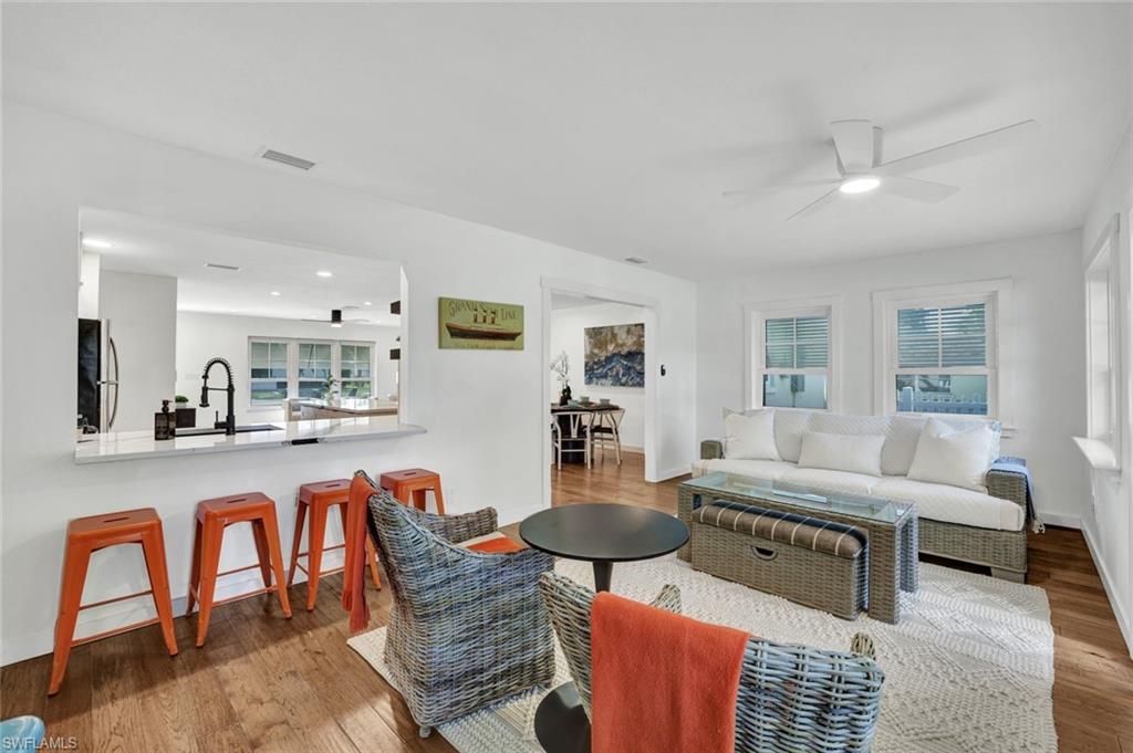 Southwest Florida charm meets modern comfort in this on-trend, beautifully updated pool home, ideally located just moments from the water. From the airy white interior spaces to the inviting turquoise front door, this home gives vacation-mode energy the moment you arrive. Step inside to a light-filled, open-concept living area featuring vaulted ceilings, neutral finishes, and stylish touches throughout. The spacious living room flows seamlessly into the updated kitchen, complete with crisp white cabinetry, gorgeous countertops, ample storage, and a sleek new Glass Front Refrigerator. The bedrooms are bright and serene, with the primary en-suite offering natural light, upgraded bathroom and huge walk in closet. Whether entertaining or unwinding, this home offers effortless comfort at every turn. The sunroom—wrapped in windows—opens to a pavered lanai overlooking the sparkling pool and lush, PRIVATE BACKYARD. Enjoy morning coffee, afternoon swims, and evening gatherings in your own tranquil outdoor retreat. The fully screened pool enclosure with covered seating area allows for year-round enjoyment while keeping maintenance simple.....you don't even have to worry about heating the pool, the solar panels take care of that! In fact you don't have to worry about anything with your Metal roof, (only 10 yrs old) Newly Painted Exterior, BRAND NEW electric panel and NEW A/C (2024) all in a home that DID NOT FLOOD i!!!!!! This home places you just minutes from the Back bay, boat ramps, dining, shopping, and some of Florida’s most beautiful beaches. Move-in ready, impeccably maintained, and perfectly located—this is coastal living at its finest.