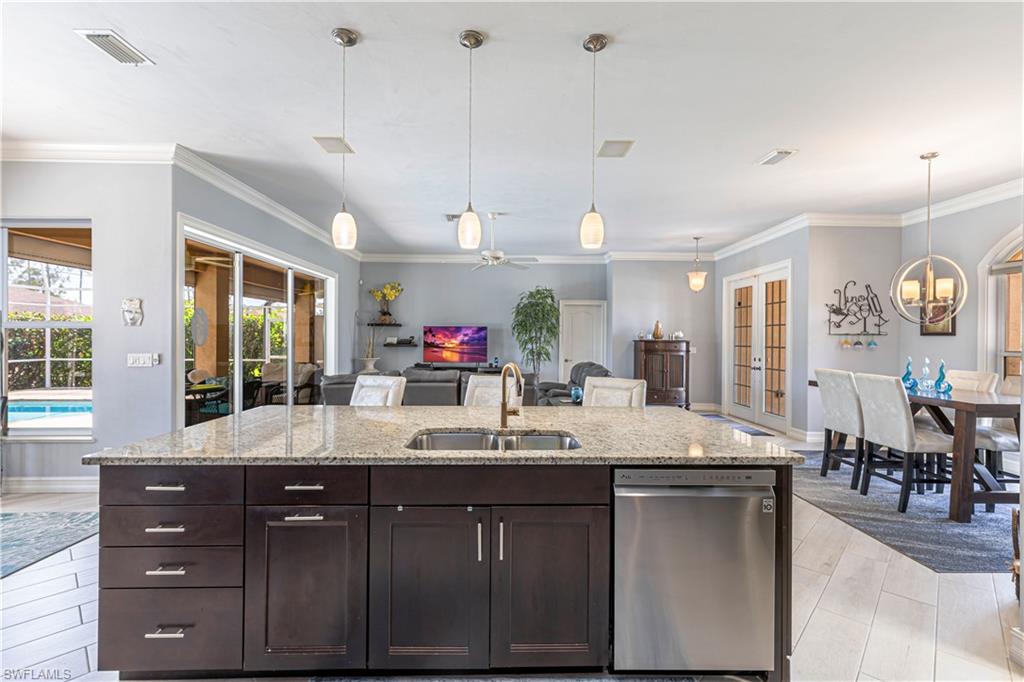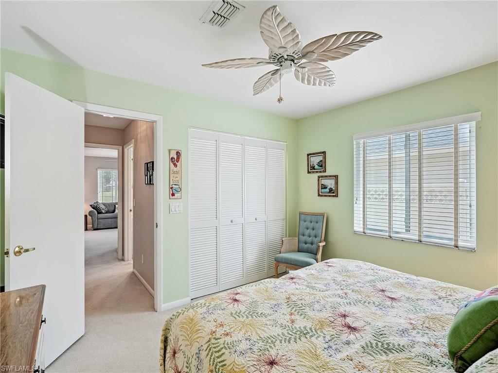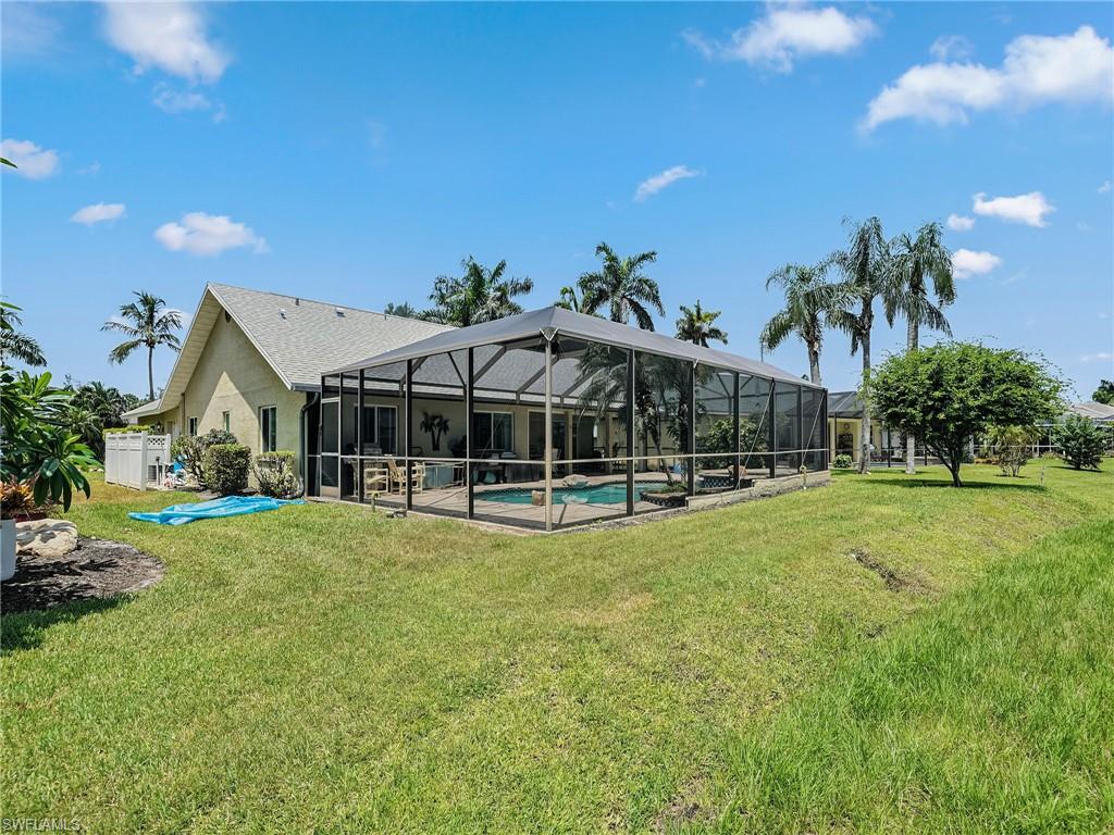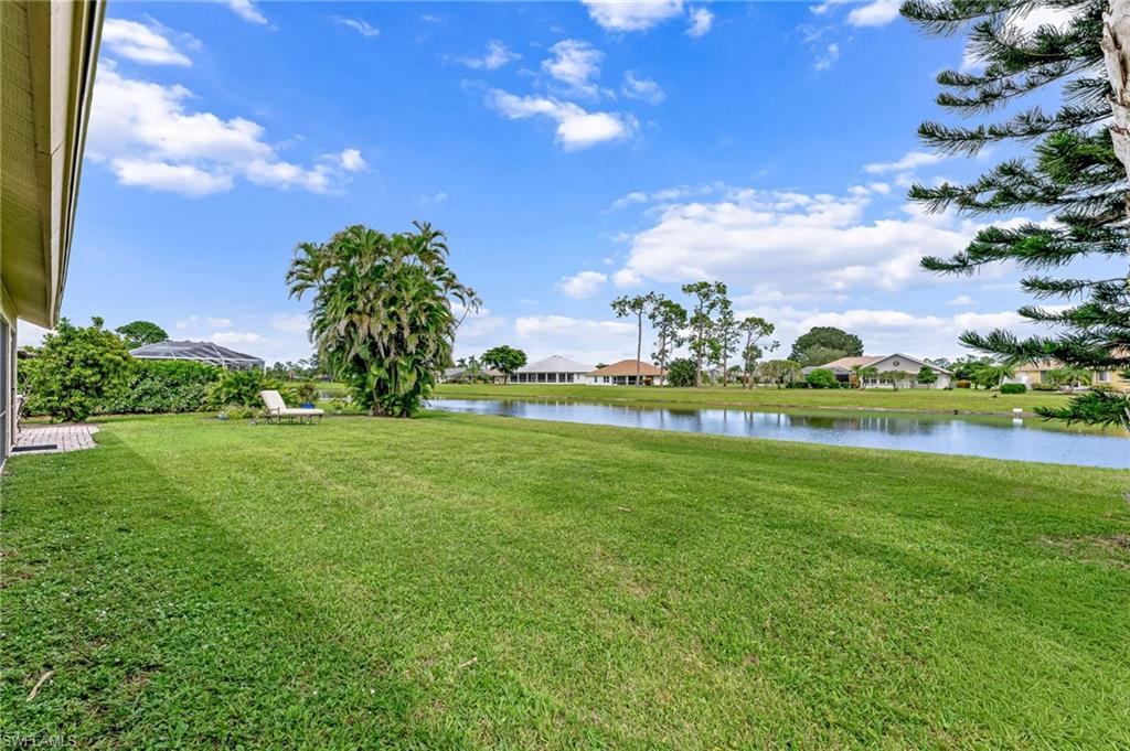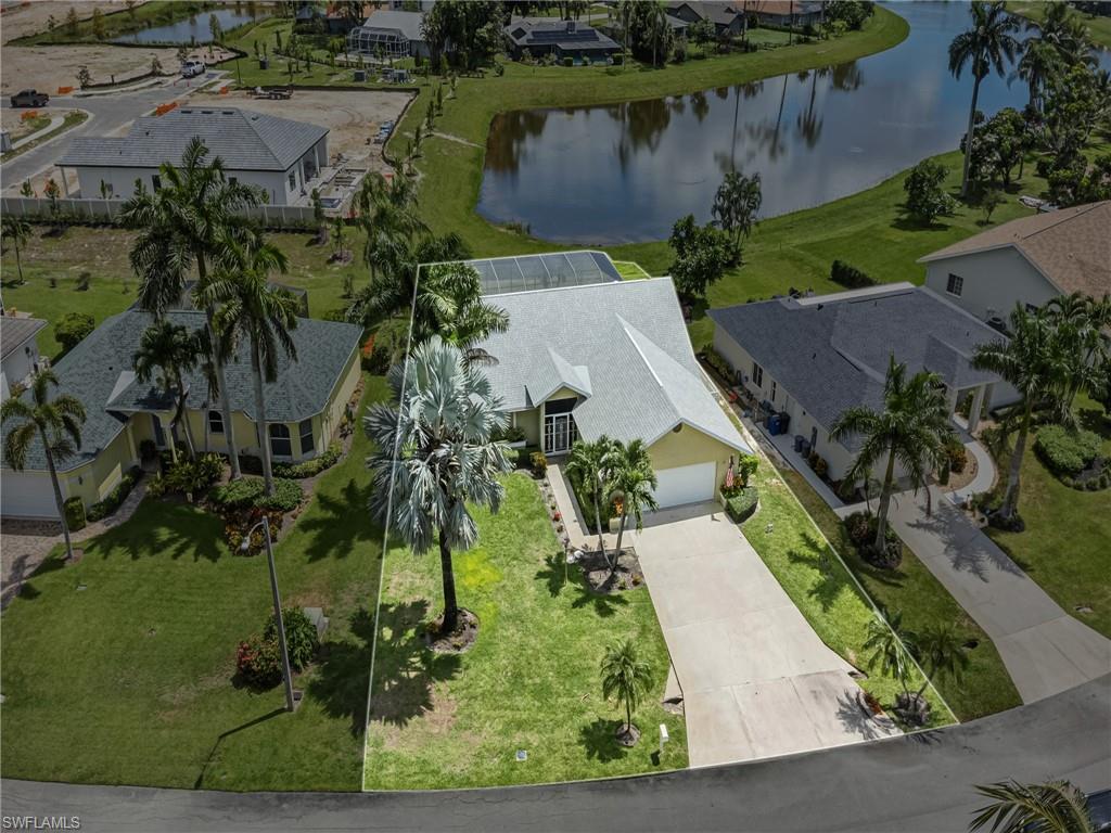 Amazing Opportunity to Live in a Thriving Family Neighborhood in Bonita Springs!! Welcome home to this beautifully maintained 3-Bedroom, 2-Full Bath home with a stunning LAKE VIEW! This home features a spacious two-car garage, cathedral ceilings, and a split bedroom floor plan offering privacy for you and your guests and ample walk-in closets and storage in all bedrooms. The primary suite includes a luxurious California closet and direct access to the screened lanai – perfect for enjoying sunrise coffee or evening wine while overlooking the peaceful lake. There’s even room to add your own in-ground pool and spa. The entire back of the house has beautiful lake views with a three-panel sliding door that pockets behind the wall for full access to the 400-sf. screened in lanai, where you can relax to sights of wildlife and sounds of birds. RECENT UPGRADES include new interior plumbing pipes (2025) with a 30-year transferable warranty, New Roof (2024) with a 15-year limited warranty, Hurricane-rated Garage Door (2024), Irrigation Pump (2021) and A/C (2018). Situated in a NO FLOOD ZONE (Zone X) with durable concrete block & stucco construction for peace of mind. Centrally located – just minutes from downtown Bonita Springs, shopping, dining, entertainment and Bonita Springs Charter School and Bonita Springs High School. Southwest Florida’s beautiful beaches are only a short drive away. Move-in ready! Do not miss this rare opportunity – Schedule your Personal Showing today! This property will not last!
