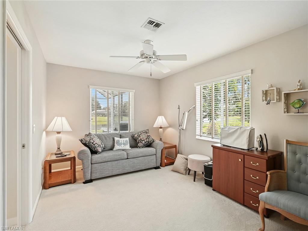 Discover this Bonita Springs retreat featuring a PRIVATE POOL and SPA plus a prime location! This inviting 2 bedroom plus den, 2 bath home provides 1,636 square feet of living space designed for everyday living and entertaining. A welcoming French door entry opens to a bright interior filled with natural light and soaring vaulted ceilings. The spacious primary suite includes an en-suite bath with dual vanities and a walk-in shower. Step outside to the screened lanai where the pool and spa overlook beautiful lake views with southern rear exposure. For peace of mind, the home is equipped with electric and manual storm shutters, and ownership is stress-free with no HOA fees, no CDD, and no flood insurance required. Conveniently situated off Imperial Parkway and Old US-41, this home places you minutes from I-75, Downtown Bonita Springs, premier golf courses, shopping, dining, entertainment, and Southwest Florida’s most desirable beaches. This is a rare opportunity that combines location, lifestyle, and value.