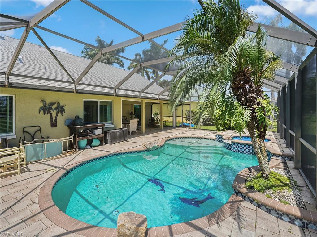 Location, Luxury, and Lifestyle in Beautiful Bonita Springs Welcome to Paradise! Discover your dream home in one of Bonita Springs’ most desirable communities. This stunning 3-bedroom, 2-bath single-family pool home is tastefully remodeled with attention to detail and exudes relaxation. New bathrooms, A/C, water heater, windows, exterior doors, paint, pavers epoxy, lights and landscaping have all been taken care of so you may move in and enjoy the serenity. Perfectly positioned just minutes from some of the world’s most breathtaking beaches, location is ideal. Less than an hour from Naples, 5th Ave Beaches, spring training for the MN Twin and Red Sox and a few miles from charming Bonita Springs. Step inside to an inviting, light-filled living room that flows effortlessly into a generous dining area, ideal for hosting family gatherings or entertaining friends. The modern kitchen is a showstopper, featuring stainless steel appliances, quartz countertops, and a gorgeous glass mosaic backsplash, all complemented by generous cabinet space and a convenient pass-through window to the lanai. The spacious primary suite offers a peaceful retreat with a large walk-in closet and a private updated bath with a sleek walk-in shower. Two guest bedrooms on the opposite side of the home ensure privacy for family or visitors, with their own stylish bathroom, fully remodeled. Step outside to your private backyard oasis, a covered lanai overlooking a sparkling pool where you can relax.