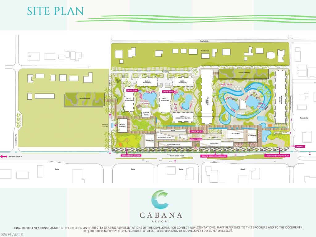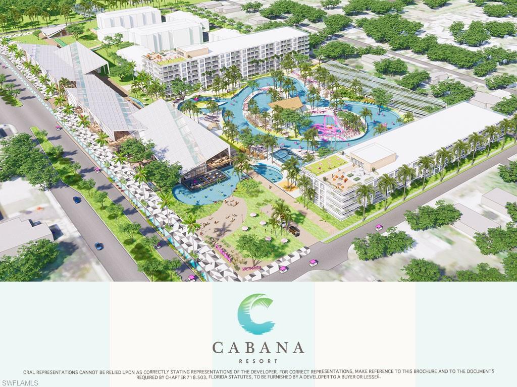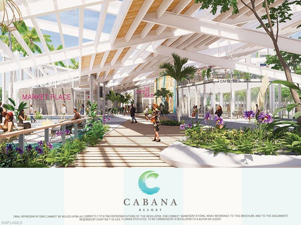 C667 - Cabana is bringing vacation destination amenities and day-through-night family focused attractions to Bonita Springs. It will elevate Florida style fun in the sun to state-of-the-art standing. Its 7 acres of Resort Pools feature a winding Lazy River, ‘surfable’ triple Flow Rider water feature, a pool with multiple water slides, all within 3 pool areas. 7 stories of energized contemporary architecture introduce a fresh face to Gulf view condo living with teak trimmed, unit-wide glass balconies and spacious floorplans, all bookended by massive ground to rooftop art installations. Cabana’s Grand Food Hall is an airy and open expanse sheathed in glass for 360* views. It’s designed for boardwalk strolling, casual to fine dining, shopping, sampling and socializing over brews, pop-up arts and Bonita-centric sights in a year round setting.