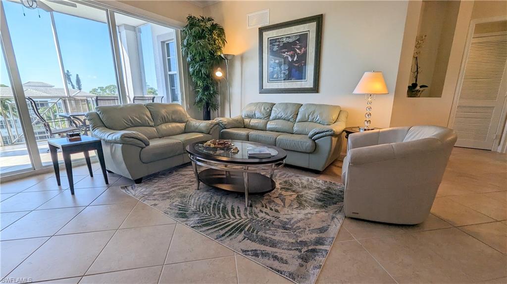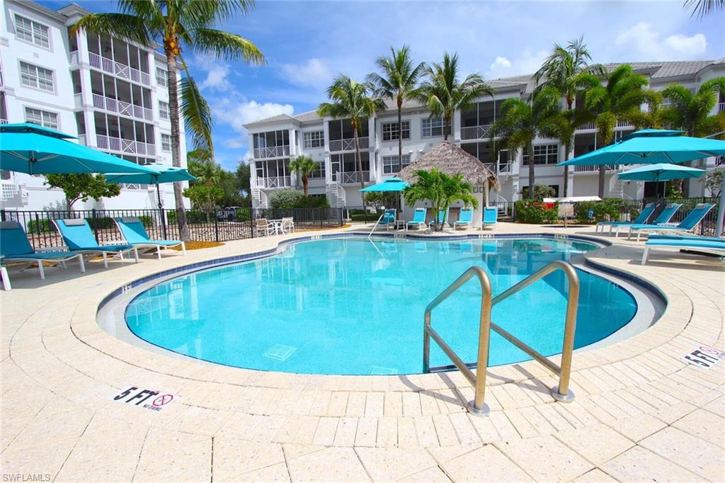 WOW! You'll love the view and privacy offered by this "RESORT POOL" residence. Bonita Village is one of the most exciting, close to beach communities in SW Florida! The best part may be the addition of two more pool areas and the massive Lazy River! This residence is only steps the Clubhouse & Fitness Center, and the Free Beach Shuttle to Bonita and Barefoot Beaches! The Quiet Pool & Spa is about to undergo a fantastic upgrade and wait until the new Lazy River is finished! See the sassy new Social Room in the Clubhouse and visit The Groggy Frog, which serves food and drinks in Season and is “The Place Everyone Meets Everyone!” This award winning floor plan features a 20 ft. Living Room, 2 bedrooms, 2 baths, spacious Lanai, and tile throughout! The light and bright Southern Exposure and the 10' 8" ceilings maximize the open feeling. Impact windows and sliders plus post-tension construction (poured in place concrete) makes these buildings some of the best built buildings in Lee County. Many of our owners block out their Florida Time and then rent around it for additional income. There is nothing like Bonita Village! See it today and Join in the Fun!