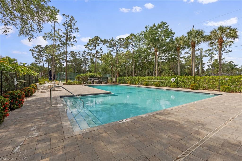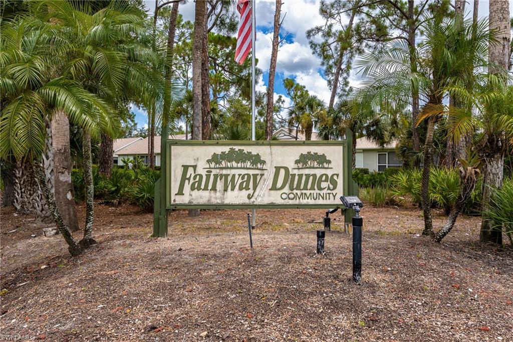Highly sought after Bonita Springs two bedroom, two bathroom TURNKEY single family home in the highly desirable Fairway Dunes of Bonita Springs. Very low HOA dues, which include landscaping, tennis courts, pool, clubhouse, and exterior paint every 8 years. THE LOCATION cannot be beat - close to 41, WEST of 75, minutes to the beautiful beaches of Bonita Springs, walk to the burgeoning downtown area! You will love the intimate feel of the community at Fairway Dunes, with only 80 homes, it truly is a "neighborhood." This home is in move-in-ready condition. Very large family room with vaulted ceilings and beautiful tile flooring with living, dining and office space open to one another. The kitchen is easily accessible with plenty of prep and counter space. Just off the living area is a spacious lanai and a separate outdoor patio grilling area. The ensuite primary bedroom is quite spacious with an ensuite primary bath featuring two sinks, a linen closet, and a large walk-in closet. EXCELLENT location -- close to Gulf of Mexico beaches, ample dining and shopping. 15 minutes to RSW airport!! Bring your bathing suit and toothbrush! Recent upgrades include a newer roof, AC, garage door, shutters, refrigerator, washer, and tinted sliding doors, along with a private rear patio and updated window treatments. Hurry as homes in this community and in this condition do not stay on the market for very long!