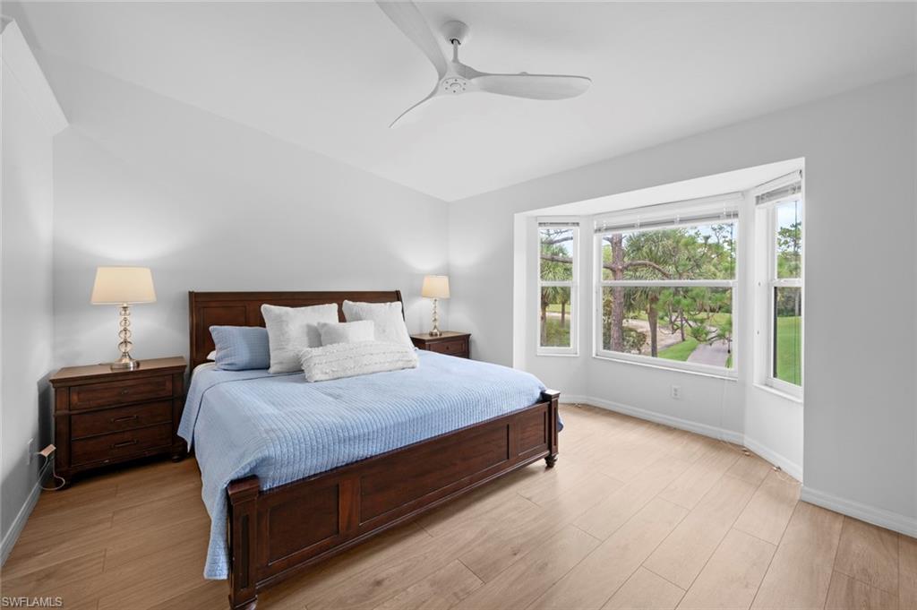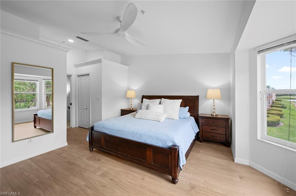 Discover the allure of this beautifully remodeled Carlton Veranda in the sought-after Highland Woods community. This stunning home showcases an open kitchen concept featuring stainless steel appliances, custom cabinetry, and a granite island, perfect for culinary enthusiasts. The bathrooms have been elegantly redesigned with custom vanities and walk-in showers with glass enclosures, complemented by stylish "wood look" tile flooring throughout the main living space. The picture frame window lanais provide breathtaking views of the golf course and lake, making it an ideal space for relaxation. Renowned for its exceptional value, Highland Woods offers an array of amenities. Enjoy a round of golf on the impressive 18-hole course, stay active at the state-of-the-art fitness center, or engage in friendly matches at the bocce ball and tennis courts. Dining options are plentiful, with choices ranging from a casual grill room to formal dining and alfresco outdoor options. Recent enhancements to the community include a resort-style pool and spa, a cabana bar and restaurant, new pickleball courts, and resurfaced tennis courts. The location offers unmatched convenience, with grocery stores, banks, and a seasonal farmers market all within walking distance. Beautiful beaches are just 3 miles away, and you are a short drive from RSW Airport, the Shoppes at Mercato, and Coconut Point Mall. Seize this opportunity to own a magnificent condo in a vibrant community, perfectly situated to offer the best of shopping, dining, and entertainment. Highland Woods is not just a place to live; it’s a lifestyle.