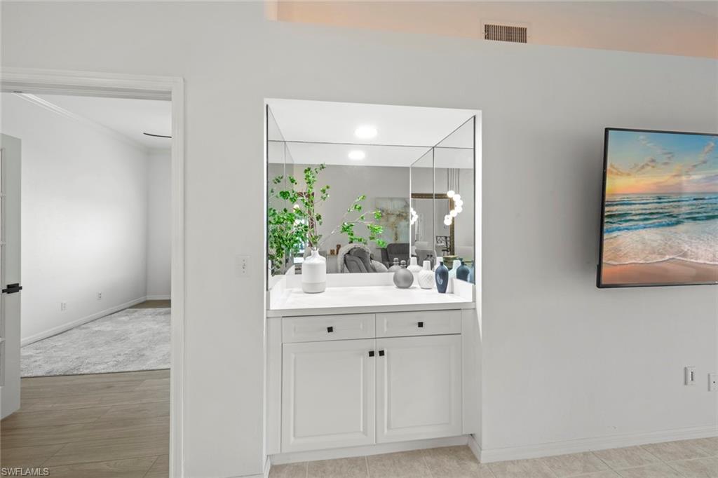 Experience luxury living in this beautifully remodeled Veranda located in the prestigious Highland Woods Golf and Country Club. This exceptional home combines elegance with modern convenience, featuring a remodeled kitchen equipped with custom cabinetry, top-of-the-line Monogram appliances, and stunning quartz countertops with a waterfall edge. The ambiance is enhanced by custom hand-blown glass lighting and a sophisticated granite bar, all set against elegant hardwood flooring. The bathrooms have been meticulously updated with premium Kohler fixtures and custom wood and tile work for a refined touch. Enjoy the peace of mind that comes with a brand new A/C and water heater, along with updated plumbing and electrical systems. An electric storm shutter and hurricane impact windows provide added security and protection. Take in the breathtaking long lake and golf course views from the comfort of your home. The community offers a wealth of amenities, including an 18-hole golf course designed by Gordon Lewis, a new resort-style pool and spa complete with a cabana bar and restaurant, and Har-Tru tennis and pickleball courts. Dine alfresco or savor a meal in the grill room, or enjoy an elegant evening in the formal dining room. Conveniently located near premier dining and shopping destinations, such as Coconut Point, Mercato of Naples, and The Promenade of Bonita Springs, this home offers both lifestyle and convenience. With the pristine beaches of Barefoot, Vanderbilt, and Bonita just a short drive away, and easy access to RSW Airport, this home is perfectly positioned for enjoying all the area has to offer. This home offers an exceptional living experience with its outstanding upgrades, prime location, and fantastic community amenities. Don’t miss the opportunity to own this remarkable property and enjoy the vibrant lifestyle of Southwest Florida.