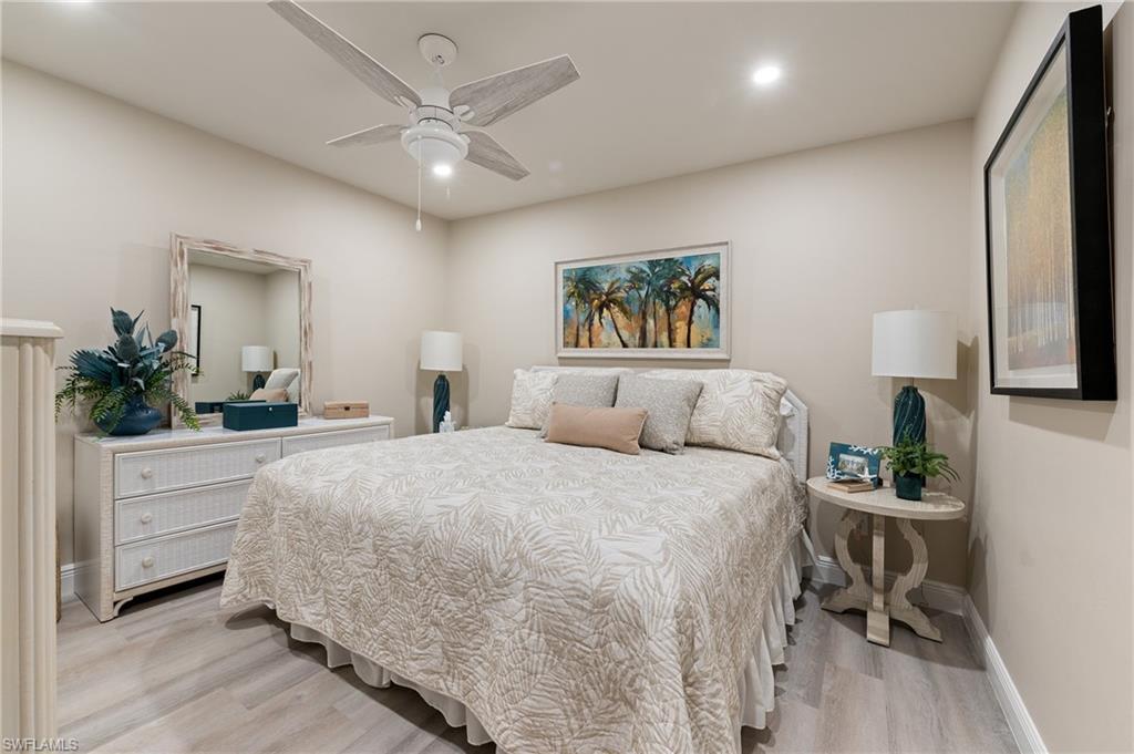 Discover an exquisite second-floor Barrington veranda located in the prestigious Highland Woods Golf and Country Club. This stunning home features two bedrooms, two bathrooms, and a versatile den, all beautifully revamped within the last two years to offer an unparalleled blend of comfort and elegance. The property boasts tastefully tiled lanais, providing an ideal space for relaxation and social gatherings, while the sophisticated Luxury Vinyl Plank flooring runs seamlessly throughout the home to enhance its modern appeal. The kitchen is a culinary enthusiast’s dream, equipped with quartz countertops and 42-inch shaker-style wood cabinetry, perfect for both everyday cooking and entertaining guests. Both the guest and master bathrooms have been elegantly updated with quartz countertops and sleek glass shower enclosures, creating a spa-like ambiance. To complement its luxurious interior, the home includes contemporary upgrades such as new fixtures, refined lighting with added can lights, and a storm shade on the rear lanai for enhanced comfort and protection. Situated in a community celebrated for its exceptional amenities, Highland Woods offers an 18-hole golf course, bocce and tennis courts, multiple community pools, and a state-of-the-art fitness center. The newly completed resort-style pool and spa, along with a cabana bar, restaurant, and pickleball courts, further enrich the community’s allure. Conveniently located just minutes from the Promenade of Bonita Springs, the residence provides easy access to a variety of dining, shopping, and entertainment options. Plus, the pristine beaches of the Gulf of Mexico are a mere 4 miles away, presenting the perfect combination of luxury, convenience, and prime location. Don’t miss this incredible opportunity to own your piece of paradise!