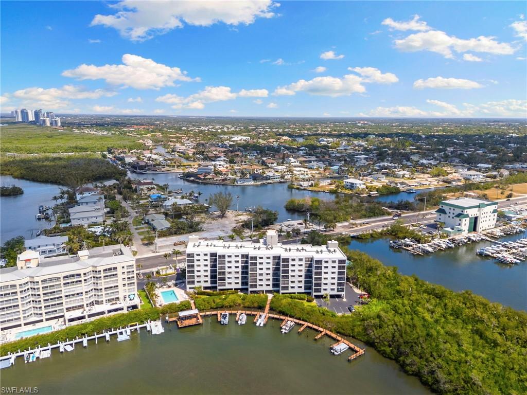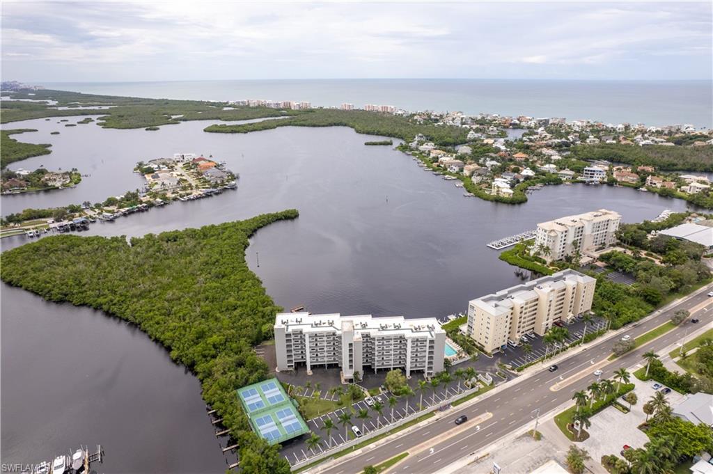 Your Beach and Bay Retreat ...LITTLE HICKORY BAY...PANORAMIC BAY VIEWS...ON GULF ACCESS WATER (No Bridges)...WALK TO THE BEACH...DOCKS INCLUDED...UNDER BUILDING PARKING #508...PICKLEBALL/TENNIS...KAYAK LAUNCH & STORAGE...A SLICE OF PARADISE FOR A FRACTION OR THE COST OF OTHER WATERFRONT PROPERTIES! ~Welcome to the waterfront community of Little Hickory Bay. Surrounded by multi-million dollar properties in Barefoot Beach & Little Hickory Shores, located in Collier County = Lower Taxes, is the wonderful, immaculate 2 bed/2 bath, 5th floor beach retreat with panoramic bay views. ~The spacious Primary Bedroom has wonderful bay views and sliders out to the balcony as well as an en suite bathroom with raised vanity and new heavy glass shower doors. A Great Room floorplan allows for an abundance a natural light and water views from all rooms in the condo. The guest bedroom is located next to the guest bath complete with condo/tub combination with new glass shower door and raised vanity. Plenty of cabinetry and new tile in the kitchen and foyer. A washer/dryer closet, extra storage closet on the same floor as the unit, & covered parking complete this wonderful condo. Sold turn-key furnished, lenient rental policy of 30 day minimum 12 x per year also makes this a great investment property or a perfect place for your "home away from home". ~ Relax on your screened balcony, complete with electric impact storm shutters, and watch the dolphins playing in the bay, the colorful Florida sky, plus the tropical birds and the boats going by all from your balcony! ~Play Pickleball/Tennis on the newly resurfaced and fenced courts. Enjoy basking in the sun and swimming in the pool at the bayside pool/spa, fishing on the community pier, visiting with your friendly neighbors in the spacious community room, kayak/paddle board on the bay (kayak/board/bike storage /launch area), or take your own boat/rent a boat at the nearby marinas to explore the stunning Back Bays and Gulf!!! ~DOCK INFORMATION: THE DOCKS ARE COMMUNITY DOCKS WHICH ALLOW ACCESS FOR ALL RESIDENTS. YOU CAN KEEP YOU BOAT THERE FOR $100/YEAR AS LONG AS YOU ARE IN RESIDENCE. AFTER THAT THE BOAT MUST BE STORED ELSEWHERE.(there are several nearby marinas) NO LIFTS, EXCEPT FOR FLOATABLE LIFTS ARE ALLOWED ON THE DOCKS. DOCKS ARE ALWAYS AVAILABLE. ~When you must leave your retreat take A SHORT WALK TO THE BEACH or to the Nearby Restaurants: Fish House, Coconut Jacks, C Level, Melissa's Ice Cream, Pizza, Mini Golf, etc. OR take a short car ride to enjoy fine dining, shopping, farmers markets, & entertainment at the nearby Promenade, Coconut Point, or Miramar Malls to the North or the Mercato Center to the South. Welcome home to LITTLE HICKORY BAY #508!