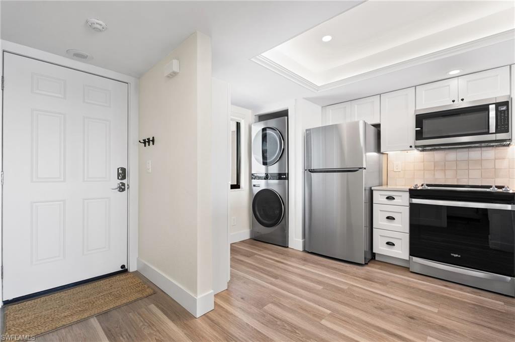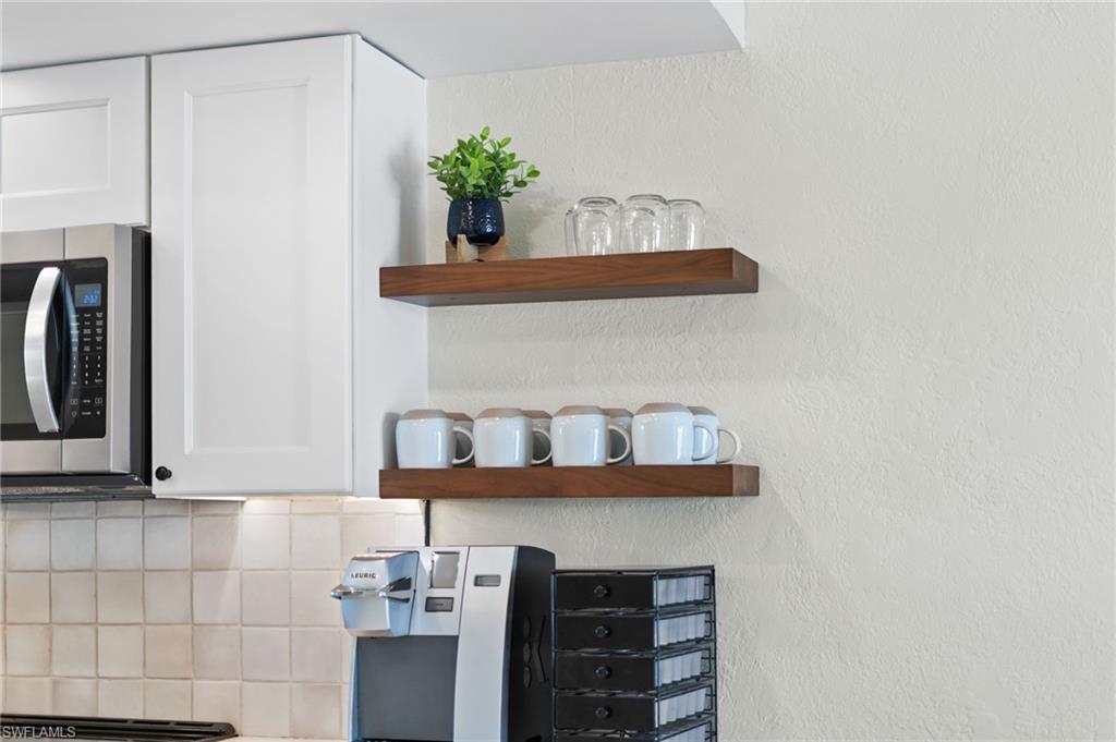 YOUR BAYSIDE COTTAGE AWAITS...STUNNING BAY VIEWS...STUNNING RENOVATION...LITTLE HICKORY BAY...ON GULF ACCESS WATER (No Bridges)...WALK TO THE BEACH...DOCKS INCLUDED...PICKLEBALL/TENNIS...KAYAK LAUNCH & STORAGE! ***A SLICE OF PARADISE FOR A FRACTION OF THE COST OF OTHER WATERFRONT PROPERTIES*** ~Welcome to the waterfront community of Little Hickory Bay. Surrounded by multi-million dollar properties in Barefoot Beach & Little Hickory Shores, located in Collier County = Lower Taxes, is the wonderful, beautiful renovated 2 bed/2 condo with only a flight of stairs to take you to the docks and pool! (elevator also). ~This wonderful condo boasts a reconfigured kitchen with walls removed, making this condo an open-concept floor plan, ideal for entertaining. Granite counters, custom wood cabinetry, recessed lighting, tumbled marble backsplash, newer Whirlpool fridge, dishwasher, and washer/dryer, tiled on the diagonal throughout make this the perfect beach retreat. ~Both bedrooms have Plantation Shutters, built-in closet cabinetry, and new fans. The Primary Bedroom has an en-suite bathroom and stunning bay views! ~Both baths have white vanities, granite counters, new plumbing/lighting fixtures, and new heavy glass shower doors. The Primary bath has a shower and the guest bath has a shower/tub combination, both with custom tile work. ~ Relax on your screened balcony, complete with electric impact storm shutters, and watch the dolphins playing in the bay, the colorful Florida sky, plus the tropical birds and the boats going by all from your balcony! ~Play Pickleball/Tennis on the newly resurfaced and fenced courts. Enjoy basking in the sun and swimming in the pool at the bayside pool/spa, fishing on the community pier, visiting with your friendly neighbors in the spacious community room, kayak/paddle board on the bay (kayak/board/bike storage /launch area), or take your own boat/rent a boat at the nearby marinas to explore the stunning Back Bays and Gulf! ~When you must leave your retreat take A SHORT WALK TO THE BEACH or to the Nearby Restaurants: Fish House, Coconut Jacks, C-Level, Melissa's Ice Cream, Pizza, Mini Golf, etc. OR take a short car ride to enjoy fine dining, shopping, farmers markets, & entertainment at the nearby Promenade, Coconut Point, or Miramar Malls to the North or the Mercato Center to the South. ~DOCK INFORMATION: THE DOCKS ARE COMMUNITY DOCKS WHICH ALLOW ACCESS FOR ALL RESIDENTS. YOU CAN KEEP YOUR BOAT THERE FOR $100/YEAR AS LONG AS YOU ARE IN RESIDENCE, IF ABSENT FOR MORE THAN 45 DAYS THE BOAT MUST BE STORED ELSEWHERE.(there are several nearby marinas) NO LIFTS, EXCEPT FOR FLOATABLE LIFTS ARE ALLOWED ON THE DOCKS. DOCKS ARE ALWAYS AVAILABLE. ~Professionally decorated, and sold turn-key furnished with new furniture. Extra storage. ~WELCOME HOME TO LHB #104~