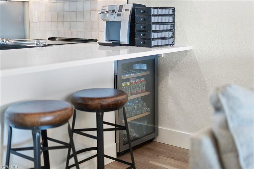 Welcome to Little Hickory Bay, where coastal living meets modern luxury at 4835 Bonita Beach Road #409. Completely renovated in 2022, this beautifully appointed 2-bedroom, 2-bath condo features soothing tones, clean lines, and upscale finishes throughout the unit. The open kitchen offers stainless steel appliances, quartz countertops, floating shelves, sleek cabinetry, and is seamlessly connected to the living and dining areas for easy entertaining. The private lanai offers a stunning 4th-floor Bay view framed by impact-resistant glass, offering both beauty and security. Other features include crown molding, recessed lighting, a wine cooler, closet systems in both bedrooms, electronic window blinds, shaker doors, and electronic metal shutters. Every detail has been thoughtfully updated—from the contemporary bathrooms to the vinyl flooring and elegant furnishings that perfectly complement the relaxed beach aesthetic. Just a short stroll to Bonita Beach, this property blends style, comfort, and convenience, with resort-style amenities including a waterfront pool, boat docks, kayak launch, pickleball and tennis courts, and a fishing pier. Whether you’re looking for a year-round residence or a turnkey vacation retreat, this upgraded coastal gem captures the best of Southwest Florida living. Schedule your showing today!