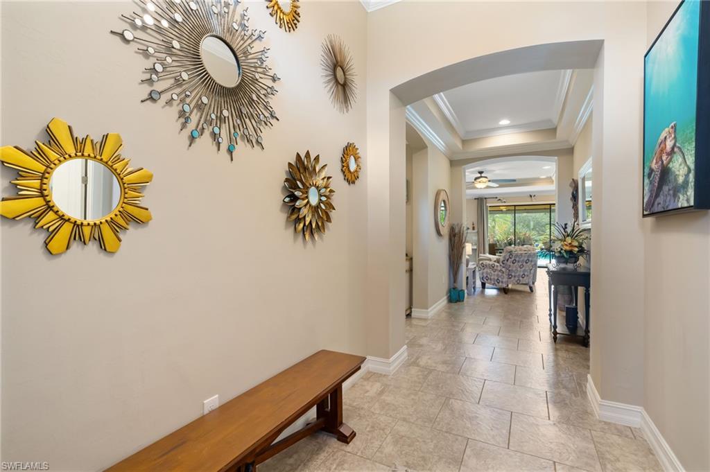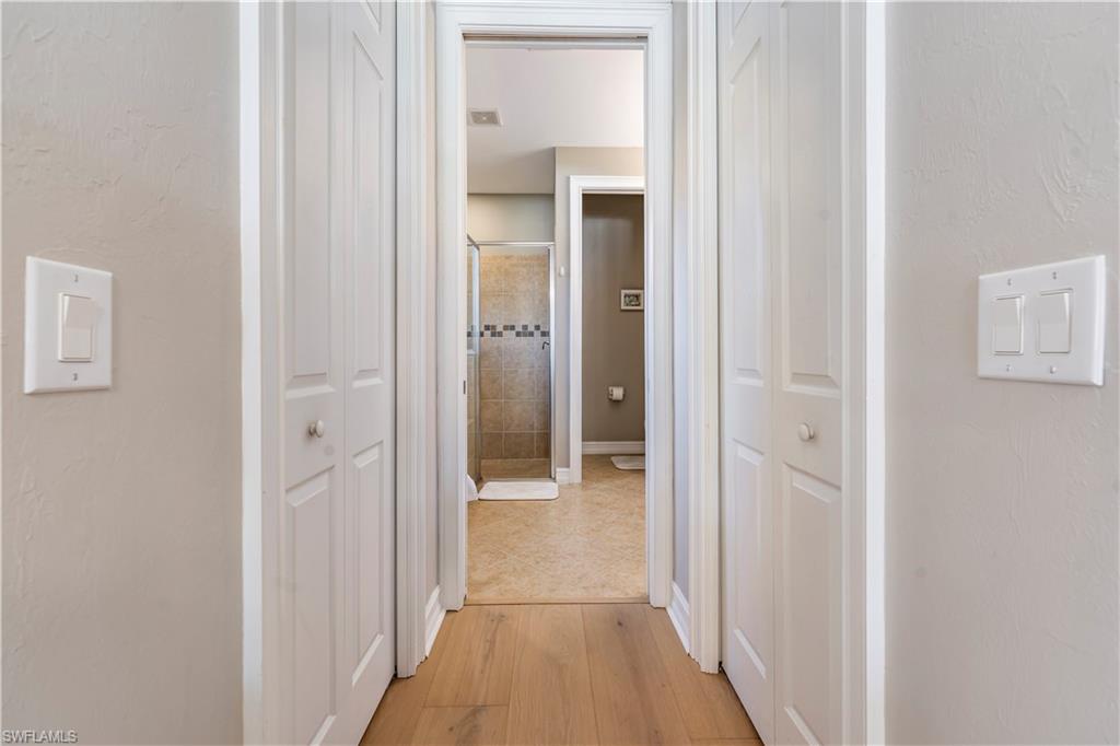 Tastefully upgraded and elegantly appointed, this 2-bedroom plus den, 2-bath residence is located in the highly sought-after gated community of Paloma. Overlooking a peaceful lake, the home features new Bespoke smart appliances, upgraded flooring in the bedrooms and lanai, and Alexa-integrated smart lighting for effortless control. Additional highlights include hurricane-rated windows, an air-conditioned, extended garage with custom storage, and a high-efficiency 3-ton AC and heat pump with additional bedroom returns for improved comfort. A smart hot water tank and custom closets throughout add to the home’s thoughtful functionality. The screened lanai offers serene water views and side privacy walls, creating an ideal setting for both relaxation and entertaining. Designed with an open, airy layout and sophisticated neutral finishes, this home beautifully blends modern convenience with refined coastal living. Conveniently situated just minutes from Bonita Beach, Coconut Point, and downtown Naples.