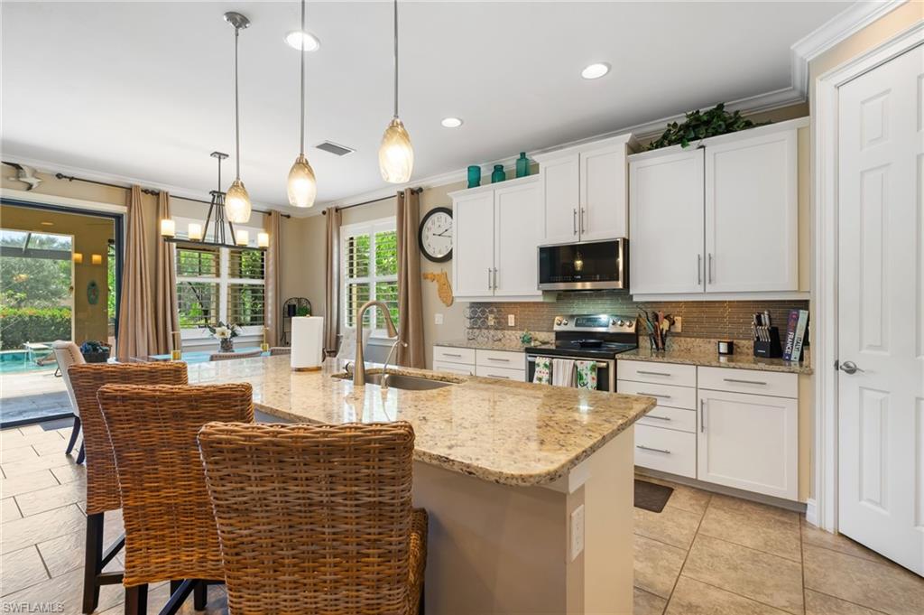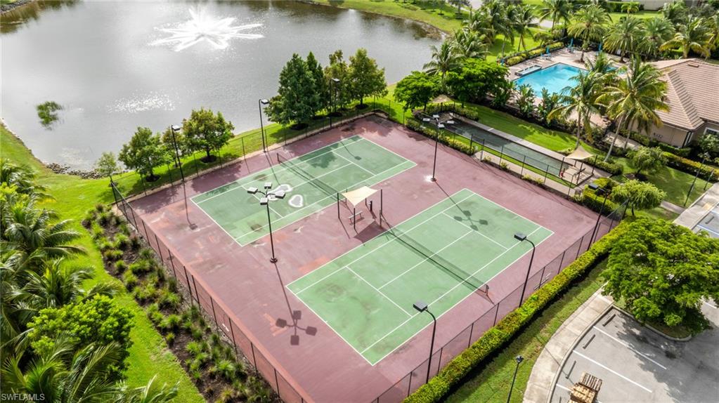 Rarely Available Edison Model with Lake Views & Custom Pool! Offered furnished and ready to enjoy, this beautiful 3BR + Den / 2BA home in the gated community of Paloma—features a custom heated saltwater pool with sun shelf, lighting, panoramic enclosure w/new screening, and overlooking the lake. This open-concept home offers split bedrooms, tile throughout, and hurricane protection with electric roll-down and accordion shutters. Interior highlights include: spacious kitchen w/granite countertops, 42” white cabinets, large island, & newer slate-finish appliances, tray ceilings, crown molding, plantation shutters, custom lighting/fans, extra closet shelving, owner’s suite w/dual sinks, walk-in shower & soaking tub, finished laundry room w/utility sink, recent interior/exterior paint, and extended garage for added storage. Low-maintenance living with HOA just $318/month, covering lawn care and access to resort-style amenities: pool, renovated clubhouse, fitness center, tennis & bocce courts. No CDD! Excellent location west of I-75—just minutes to Bonita/Naples beaches, RSW airport, Coconut Point, Miromar Outlets, and Mercato. Florida lifestyle at its best—perfect for seasonal or year-round living. Video tour available – schedule your private showing today!