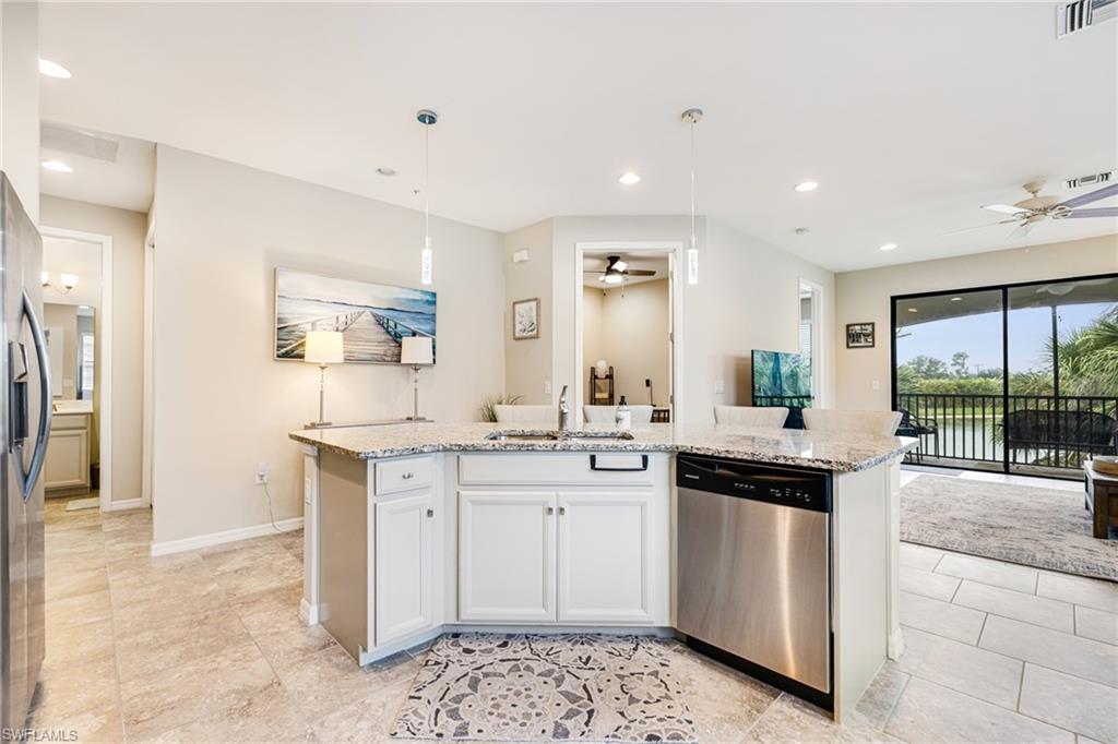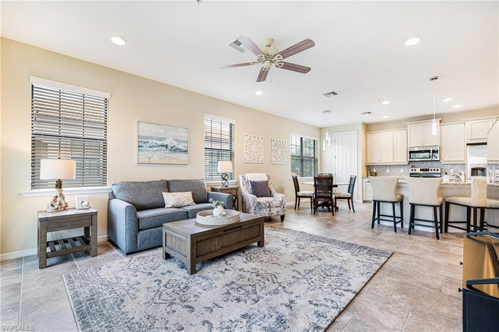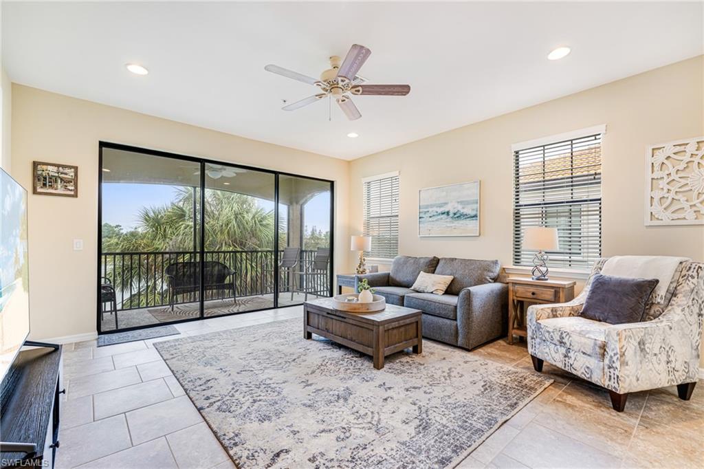 Welcome to this spacious 3-Full Bedroom End-unit Condo with sparkling Southern Lake Views and a charming fountain. The numerous Large Windows fill the condo with light in every room. Freshly Painted, this distinctive home features an Expanded Floor Plan, adding Extra Square Footage to the master closet and bath. Enjoy the bright, Open-Concept Layout with a Modern Center Island, Stainless Steel Appliances, newer Bosch Dishwasher, walk-in Pantry, All-Tile Flooring, Volume Ceilings, 8' Doors and a Culligan Water Softener. The 2nd floor unit also includes an Attached 1-car Garage and accordion Storm Panels for peace of mind. Located in the sought-after Paloma residential community, you’ll enjoy a Vibrant Lifestyle with Resort-Style Amenities, including a sparkling Resort Style Pool, Large Clubroom, Fitness Center, and Two Tennis Courts and Bocce Court Numerous Activities and Clubs include Bike Club, Billiards, Book Club, Bridge, Cafe of Life, Game Night, Ladies Luncheon, Mahjong, Poker Night, Coffee Meet-Ups, and Water Aerobics. Only minutes from the beautiful beaches of Bonita Beach and Fort Myers Beach, as well as premier shopping at Coconut Point Mall and Miromar Outlets. With convenient access to I-75 and the Airport, Paloma provides an ideal location for easy travel and endless recreation. This is more than a home—it's a Lifestyle!