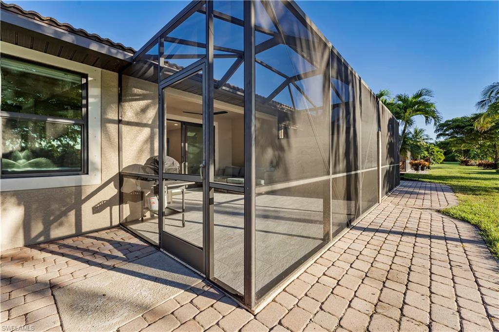 Lakefront Living in Paloma. Discover this stunning Edison model in Paloma, a gated community nestled west of I-75 in Bonita Springs. You're just minutes from Coconut Point, Mercato, Bonita Beach, and RSW Airport—convenience meets tranquility. Set on a premium lakefront lot, this 3-bedroom plus den, 2-bath residence features a custom heated wading pool with an oversized spa, mood lighting, an outdoor kitchen, and a screened lanai—all designed for enjoying those legendary Florida sunsets. Inside, an open floor plan showcases tile flooring, crown molding, tray ceilings, and built-in surround sound. The kitchen impresses with 42-inch walnut cabinetry, granite counters, a generous island, and slate-finish stainless appliances. The owner's suite opens to lake views and includes dual vanities, a walk-in shower, and a soaking tub. Thoughtful extras include roll-down hurricane shutters, a retractable screen front door, an air-conditioned garage, and a finished laundry room with utility sink and storage. HOA fees cover lawn care, landscaping, and irrigation, plus access to resort-style amenities: pool, fitness center, tennis and bocce courts, and a welcoming clubhouse. There's no CDD, and a FEMA-issued LOMR letter means flood insurance isn't required. Paloma's active social calendar—water aerobics, yoga, book clubs, poker nights, happy hours—makes this ideal for year-round or seasonal living.