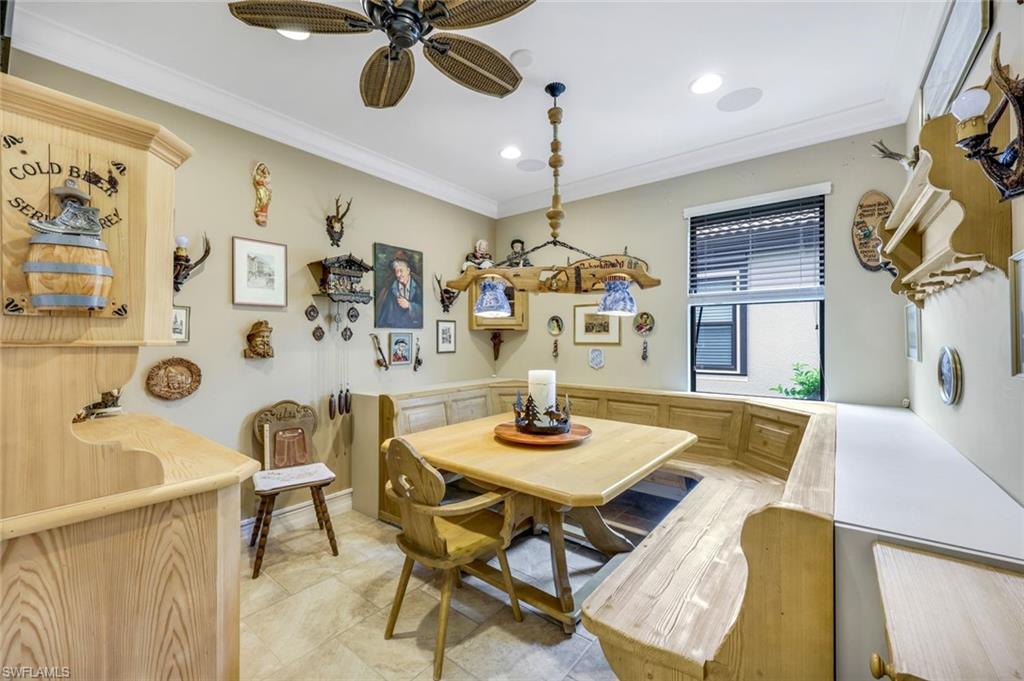 Welcome to your dream home in the gated Paloma community of Bonita Springs, Florida! This stunning, fully furnished, turnkey 3-bedroom, 2-bathroom home with a den boasts exceptional curb appeal, featuring a brick paver driveway, walkway, and vibrant tropical landscaping. Freshly painted in 2025, this residence offers modern upgrades, including a new AC unit (2025), an EV car charger in the garage, and a state-of-the-art combination microwave/air fryer/convection oven (2025). Enter the home and discover designer touches like crown molding, recessed lighting, tile flooring throughout, and elegant plantation shutters. The open-concept great room flows seamlessly into the dining area and gourmet kitchen, complete with stainless steel appliances, white cabinetry, a pantry, and a spacious island perfect for gatherings. Sliding doors open to an inviting enclosed pool area with a spa, sun shelf, basketball hoop, and waterfall, all overlooking serene green space with breathtaking western sunset views. Enjoy ample covered outdoor space for BBQs and relaxation, complemented by hurricane shutters for peace of mind.The generously sized primary suite features two walk-in closets and a luxurious ensuite bathroom with dual vanities, a soaking tub, and an oversized walk-in shower. Two additional bedrooms share a well-appointed bathroom with a shower/tub combo and granite-topped vanity. A full-size laundry room with a sink makes chores effortless.Located minutes from the airport, beaches, shopping, dining, and cultural attractions, Paloma offers a vibrant lifestyle with amenities including a clubhouse, fitness center, pool, pickleball, tennis, bocce, and a full calendar of social activities like bike groups, book clubs, mahjong, and water aerobics. This move-in-ready home combines luxury, convenience, and the best of Florida living! Mortgage savings may be available for buyers of this listing.