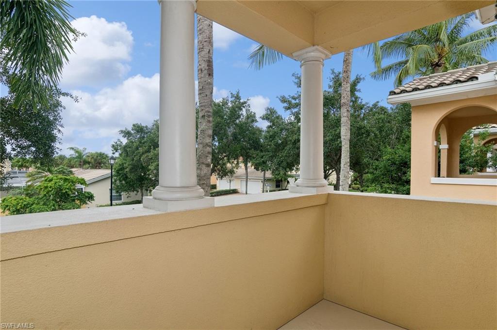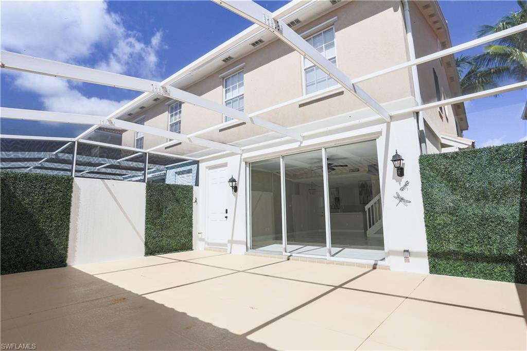 Beautifully tucked away in a very quiet area, you'll find tranquility and beauty at 28700 Alessandria in the highly sought after community of San Remo!! Rare extra large green space behind the garage, see the pictures! This Mediterranean designed townhouse is meticulously clean and bright with a fresh look!!! Newer appliances and beautiful flooring throughout!! Plantation shutters throughout!! There is a full home R/O system for the water!! The two, spacious, master en-suites are perfectly located within the townhouse!! All three bedrooms have large walk-in closets!! One of the top master suites has a private balcony for those cool moon-lit nights!! The screened in extra large lanai has an electric awning!!! The two car garage with extra storage is right across from an extremely large green area for dog walks!!!! The clubhouse has a large updated banquet room,, large, complete workout room and huge pool!! The property is only 6 mins to Publix and essential shopping!! Only 16 mins to the Beach!!! With the new opening of Logan Blvd, Naples can be accessed from Bonita Beach road very quickly!!