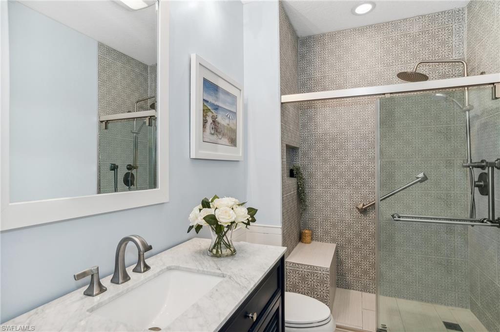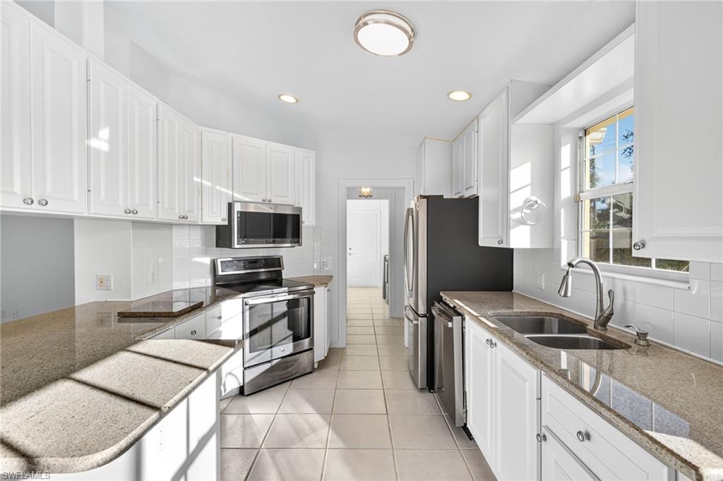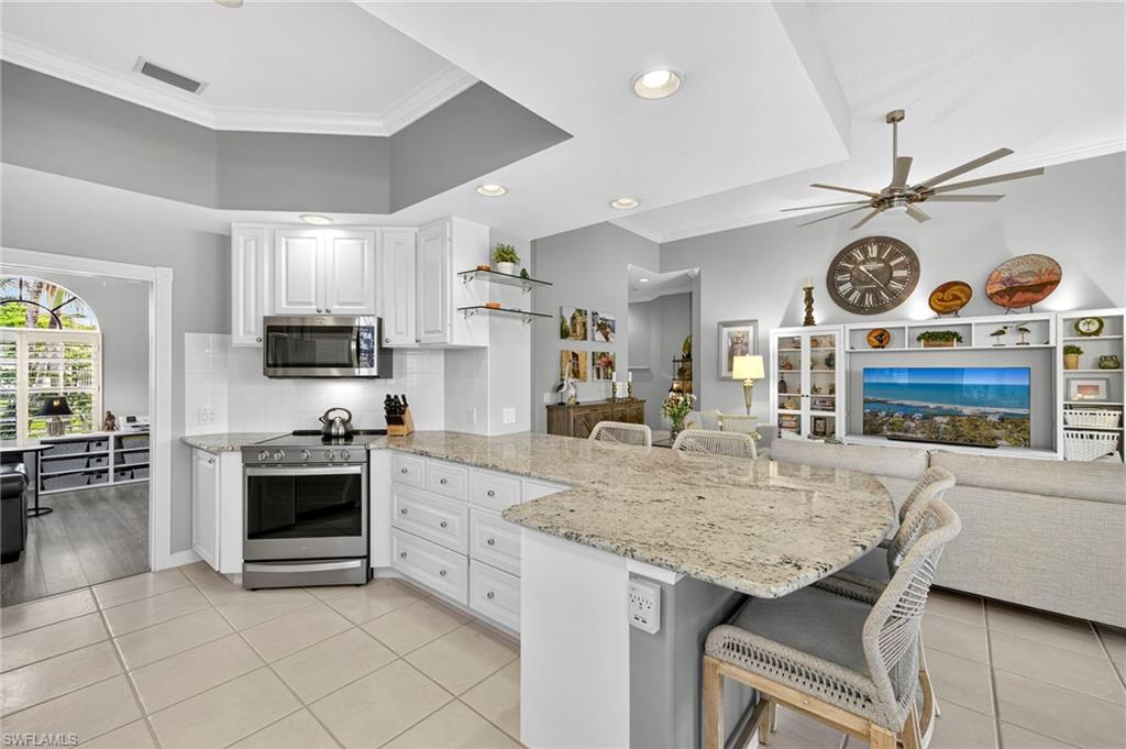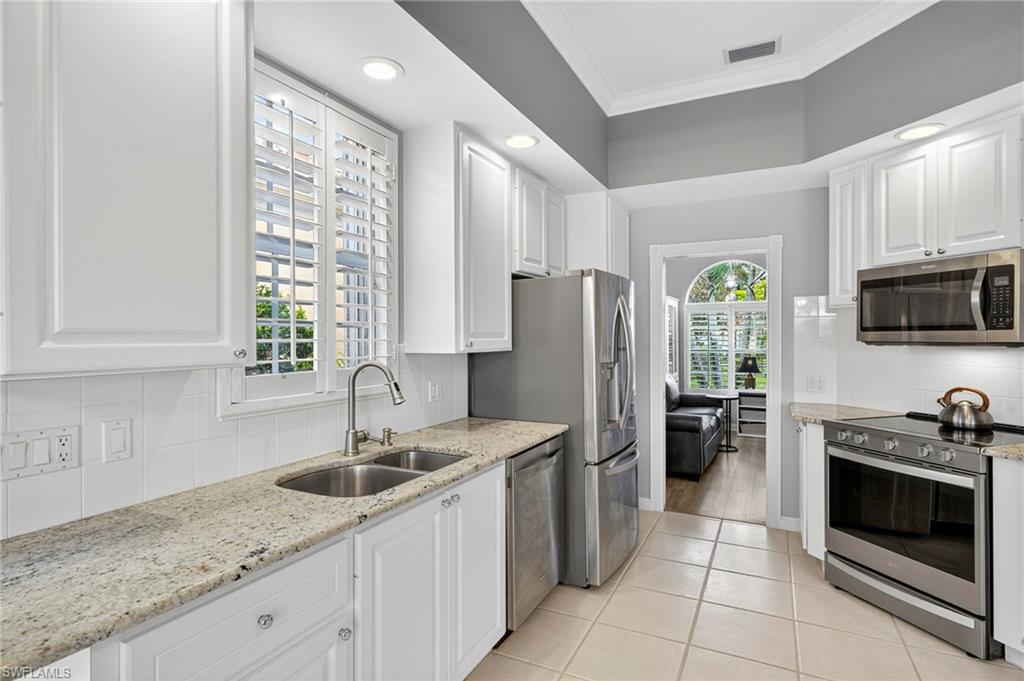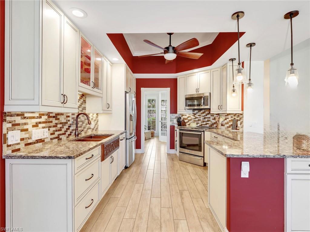 UPGRADES UPGRADES UPGRADES! Welcome to this beautifully updated 2-bedroom, 2-bathroom Capri model villa in the highly desirable San Remo at Palmira—a true luxury home that needs nothing! From the moment you arrive, you’ll notice the meticulous attention to detail, including upgraded designer lighting that gives the entire space a fresh, modern vibe, an open-concept layout designed for both style and comfort. At the heart of the home, the fully renovated kitchen shines with white shaker cabinetry, granite countertops, stainless steel appliances, and a custom tile backsplash—perfectly blending elegance and functionality. The dining area features a built-in wine hutch with glass cabinetry and accent lighting, making it ideal for entertaining or intimate evenings at home. It doesn't stop there when you step through sliding glass doors to your personal outdoor oasis—a "no-see-um" screened-in lanai featuring a built-in grill, hidden fireplace, and heated pool, perfect for year-round relaxation and gatherings under the stars. Residents of San Remo at Palmira enjoy your own "Renaissance Clubhouse", boasting a resort-style pool, lap pool, fitness center, tennis courts, and more—all with a low HOA! Let's not stop there, the roof is BRAND NEW and all mechanics are within 2-5 years old (water heater, AC, pool pump,) & there is a fully functioning vacuum system in this special Villa!