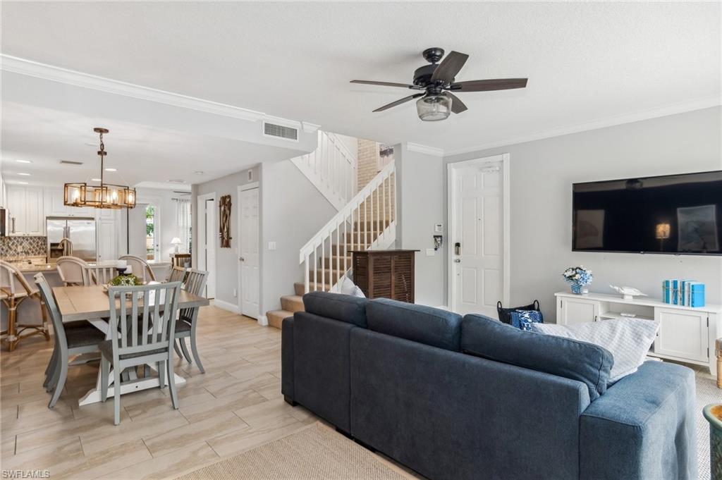 Welcome to this beautifully appointed 4-bedroom, 3-bath townhome located in the sought-after, gated community of San Remo in the heart of Estero. Offering almost 1900 square feet of well-designed living space, this two-story home combines comfort, style, and functionality—perfect for full-time residents or seasonal living. The bright and open floor plan features a spacious great room with high ceilings, tile flooring, and sliding glass doors that lead to a private screened lanai—ideal for morning coffee or relaxing evenings. The well-equipped kitchen offers solid surface countertops, ample cabinetry, a breakfast bar, and a cozy dining nook. This versatile layout includes one bedroom and full bath on the first floor—perfect for guests or a home office—while the upstairs features a generously sized primary suite with walk-in closet and en-suite bath, along with two additional guest bedrooms and an additional bathroom. Enjoy peace of mind with concrete block construction and an attached 2-car garage and a brand new a/c system isntalled in 2025. San Remo residents enjoy low HOA fees and access to fantastic amenities, including a resort-style pool, tennis courts, fitness center, playground, and clubhouse which is conviniently located almost directly across from this unit Located just minutes from Coconut Point Mall, I-75, Southwest Florida International Airport, Florida Gulf Coast University, and the area’s best beaches and golf courses. Don’t miss this opportunity to own a piece of paradise in Estero—schedule your private showing today!