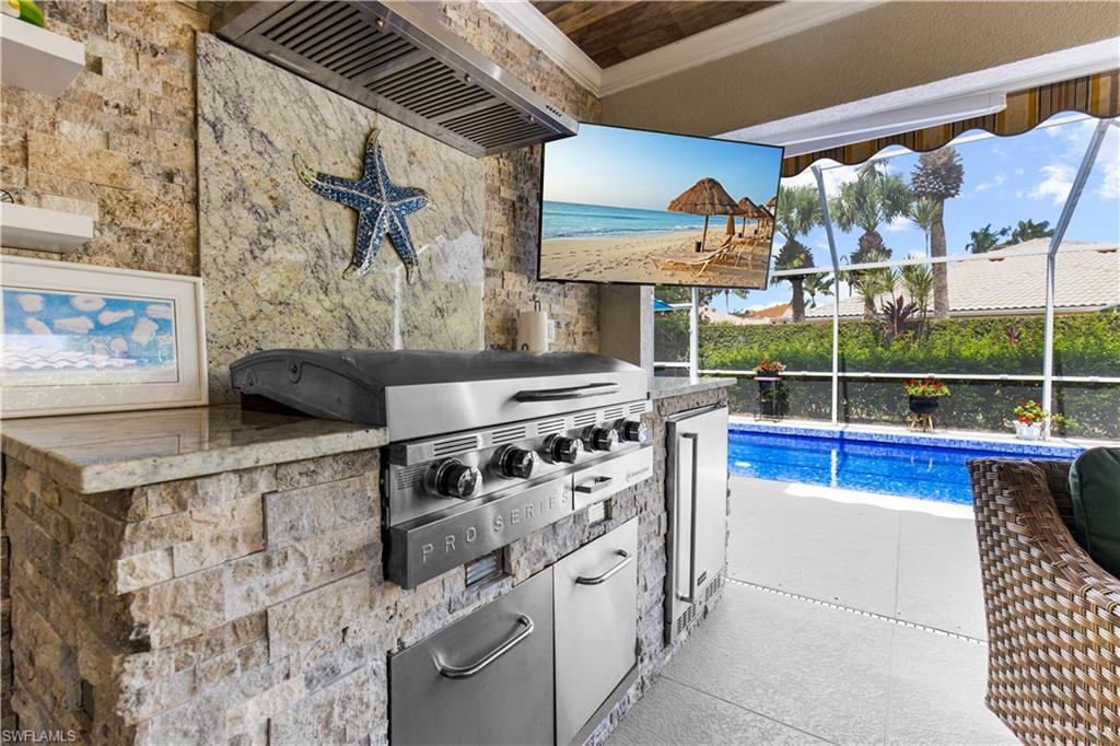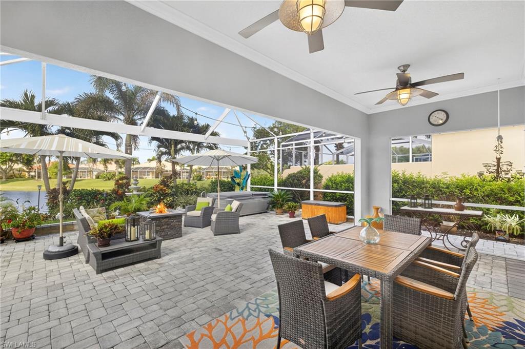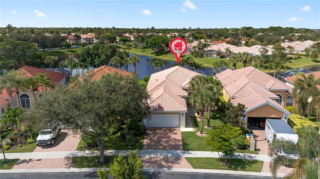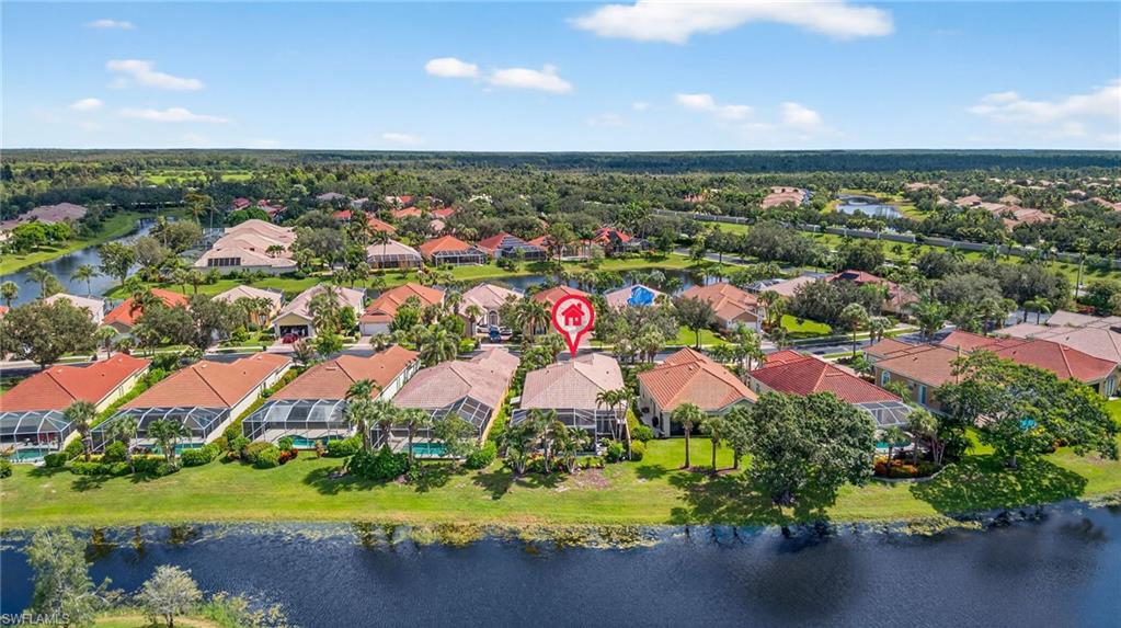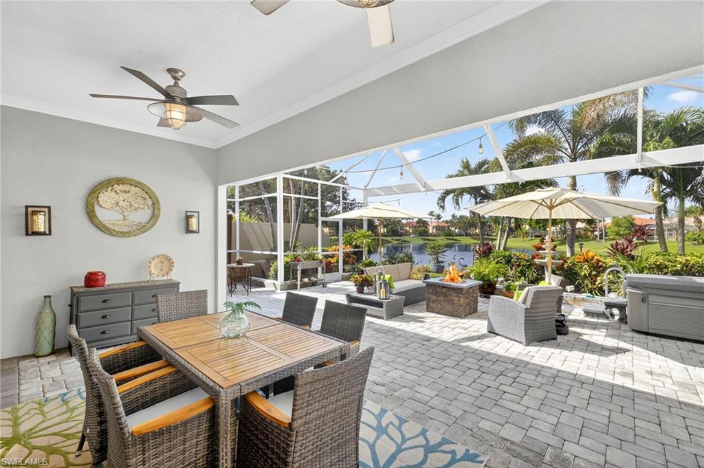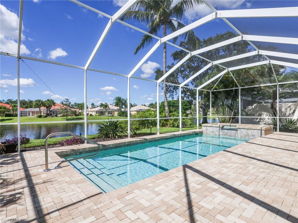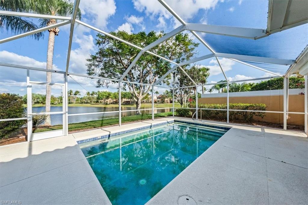 Major Price Improvement on this stunning home. WATER VIEW WITH POOL AND HOT TUB Discover this stunning 4-bedroom + den, 3.5-bath lakefront pool home in the highly desirable gated community of San Remo at Palmira—where timeless architecture meets resort-style living in the heart of Bonita Springs! From the moment you arrive, the lush tropical landscaping, paver driveway, and inviting front porch framed by graceful columns set the tone for what awaits inside. Step through the glass entry door into a bright and open floor plan filled with natural light, soaring ceilings, and tasteful finishes throughout. The heart of the home centers around a spacious great room and beautifully updated kitchen featuring granite counters, stainless steel appliances, custom cabinetry, and large and spacious ideal for entertaining. The dining and living areas flow seamlessly to the expansive lanai, where sparkling pool and spa views overlook a tranquil lakefront setting—perfect for relaxing mornings or sunset gatherings. The owner’s suite offers serene water views, dual vanities, and a walk-in shower, while guest rooms provide comfort and privacy for family or visitors. The den/flex room is ideal for a home office, reading nook, or hobby space. Elegant details like plantation shutters, crown molding, pendant lighting, and neutral tile flooring add a touch of sophistication throughout. DiVosta homes are known for being built with steel-reinforced, poured concrete walls. Enjoy the perfect balance of privacy and community living in San Remo, a DiVosta-built neighborhood known for its solid concrete construction, tree-lined streets, and small-town feel. Residents enjoy access to resort-style amenities including a clubhouse, fitness center, heated resort pool, pickleball and tennis courts, and scenic walking paths winding around sparkling lakes and charming footbridges. Located just minutes from Coconut Point Mall, downtown Bonita Springs, pristine Gulf beaches, and RSW Airport, this home captures the essence of Southwest Florida living—comfortable, convenient, and full of charm. Don’t miss your opportunity to own this inviting lakefront retreat at 14815 Carducci Ct—where every day feels like a vacation.