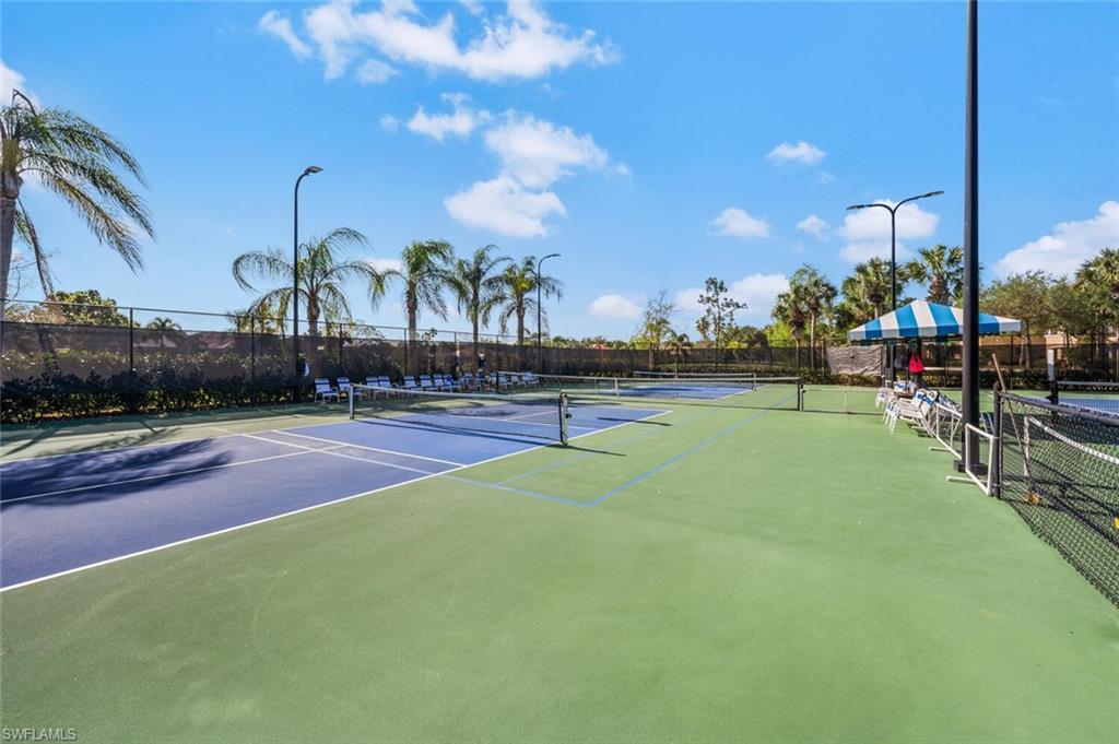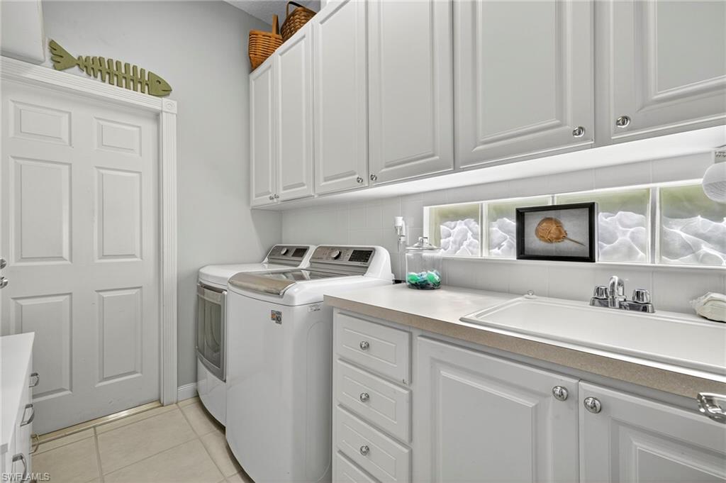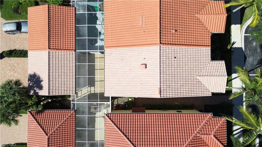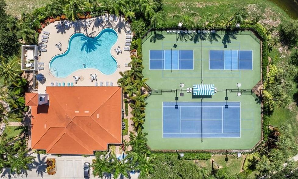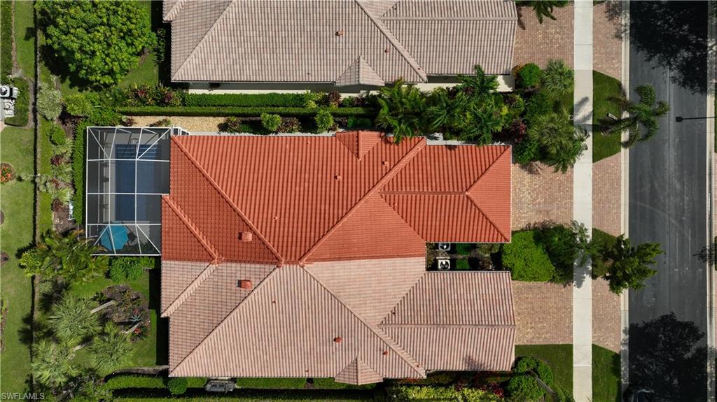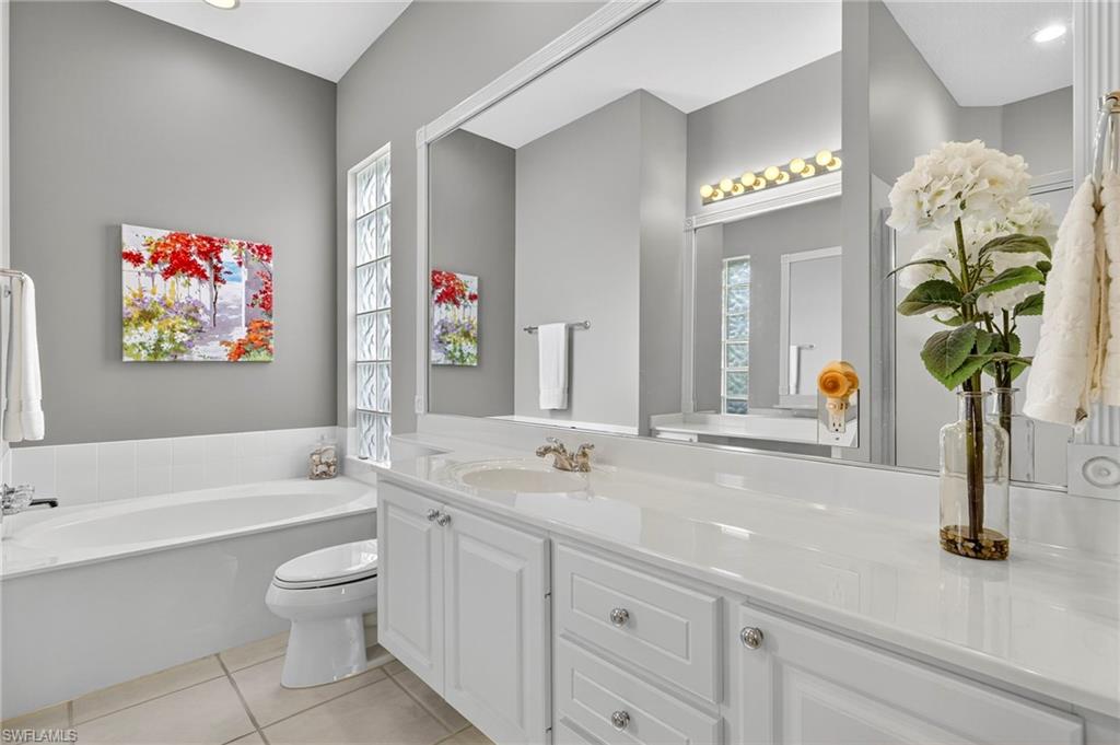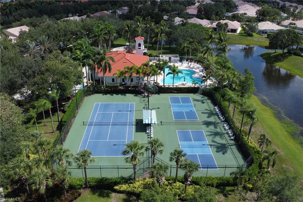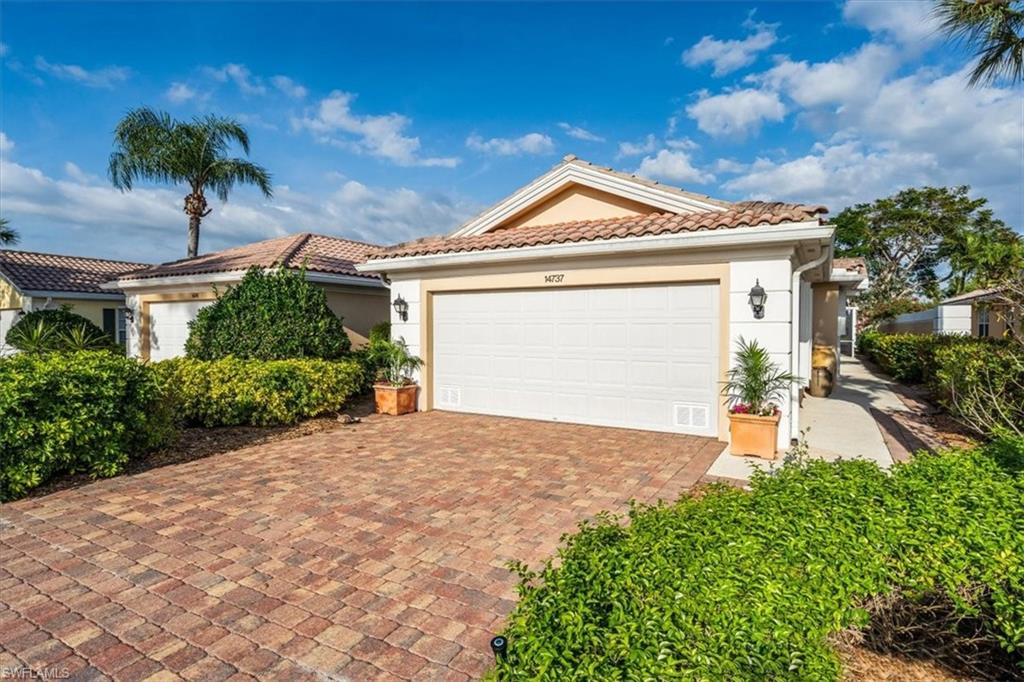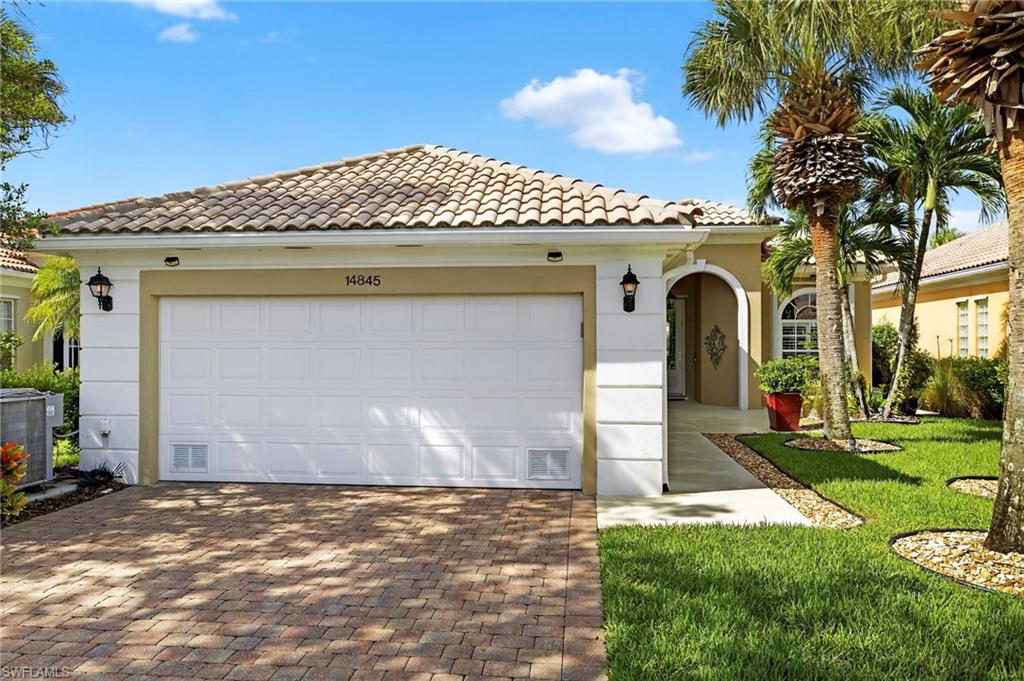 DREAMY DONATELLO!! With its whimsical touches, sophisticated upgrades, charming accents and fantasy pool backdropped by lush foliage and a sparkling lake, 14710 Donatello looks as if it were pulled from a dream!! Set on a peaceful location at the end of a quiet cul-de-sac, this popular "Oakmont" floor plan features wood, travertine, and tile floors throughout, (cozy carpet in one bedroom); upgraded kitchen with professionally painted "artist" cabinetry, 5-person raised breakfast bar with granite counters, newer stainless steel arched faucet, newer microwave, stovetop and oven, (dishwasher is stainless steel veneer); wide open floor plan, sunny southwest exposure with picturesque sunsets; large owner’s suite with shelved walk-in closet, soaking tub, 2 sinks, his and hers commodes, and dual entry walk-in-shower. Top it all off with 2 large guest bedrooms, spacious guest bath, large laundry room with glass block window, generous storage cabinets, utility sink, dryer and new washer; tall ceilings throughout and lots of wonderful natural light! As for the outdoors, enjoy a gorgeous, private space highlighted by BRAND NEW PICTURE WINDOW SCREENING ON THE POOL CAGE, modern pool with beautiful tile work and recent re-grouting, tropical landscape and glistening lake views, a large covered lanai for entertaining and a privacy wall shielding your activities! As for the age of the Key Components; 2023 Pool Pump, 2020 main Air Conditioner, 2020 Splitter Air conditioner for the garage, 2018 Hot Water Heater, $25,000 of repairs/replacements on original roof in 2022, including new underlayment in wall flashing areas, new roof tiles and new roof decking where needed as well as new gutters!! As a bonus, a stepping stone garden/side yard, a totally air conditioned, side-facing garage currently used as an arts & crafts studio, a large driveway and more!! This beautiful home is located in the friendly San Remo community in Bonita Springs with low HOA fees and no annoying CDD! Amenities include; a resort-style pool, tennis and pickleball courts, fitness room, clubhouse and playground. Located just a short drive to the area's best shopping, dining and entertainment, easy access to a new shortcut road to Naples (Logan), a straight shot to the beaches and close access to a wide open, paved walking/biking path connecting all the way from Bonita to North Naples!! Call for your private showing!!